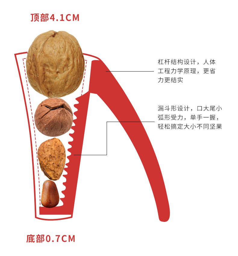 核桃夹家用开孔工具开果器拔壳开杏仁榛子硬壳夹子坚果红色开昌凌