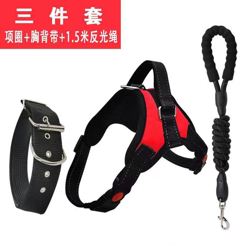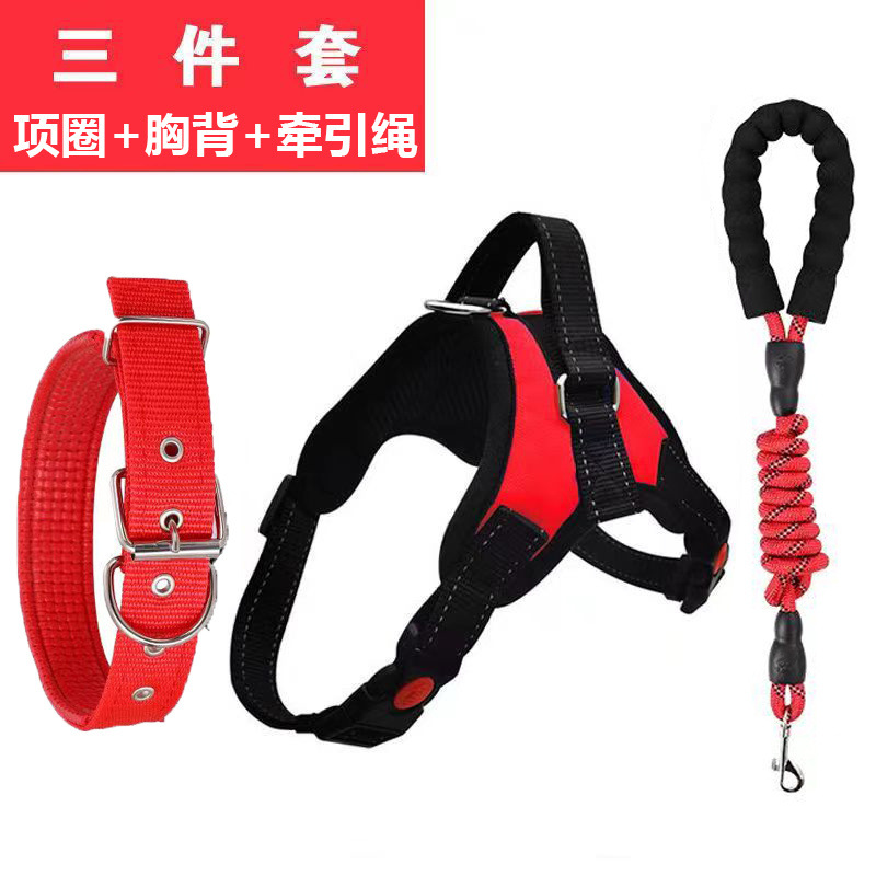 • 레드 [가슴 하네스 + 칼라 + 3m 견인 로프]