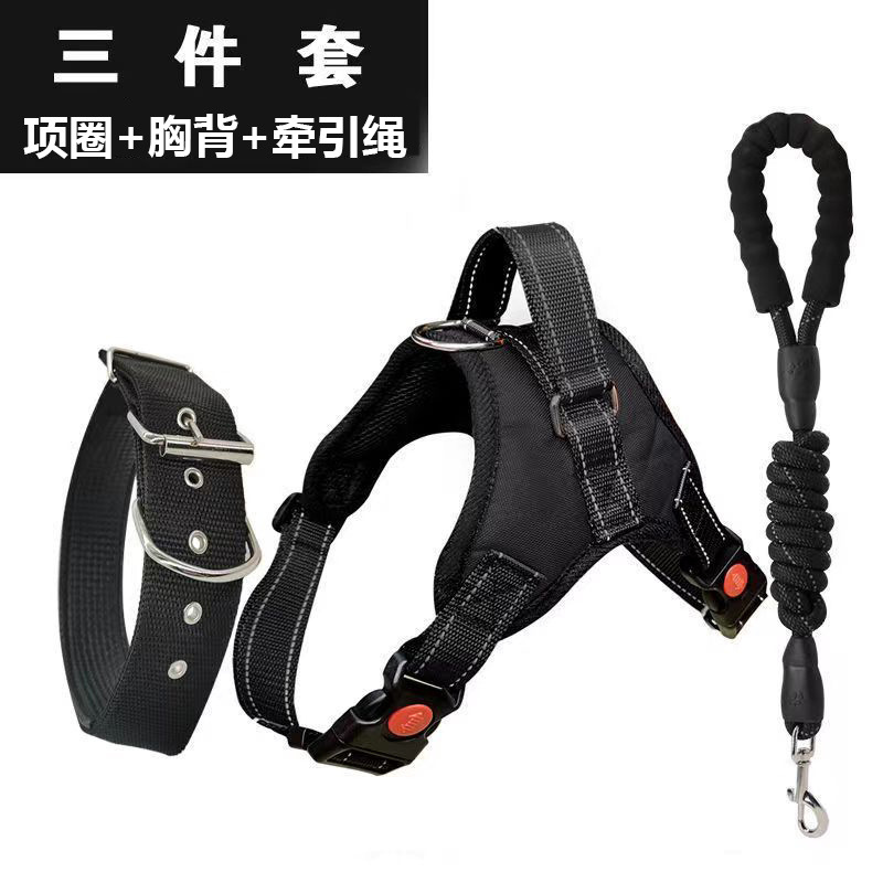 • 블랙 [가슴 하네스 + 칼라 + 3m 견인 로프]
