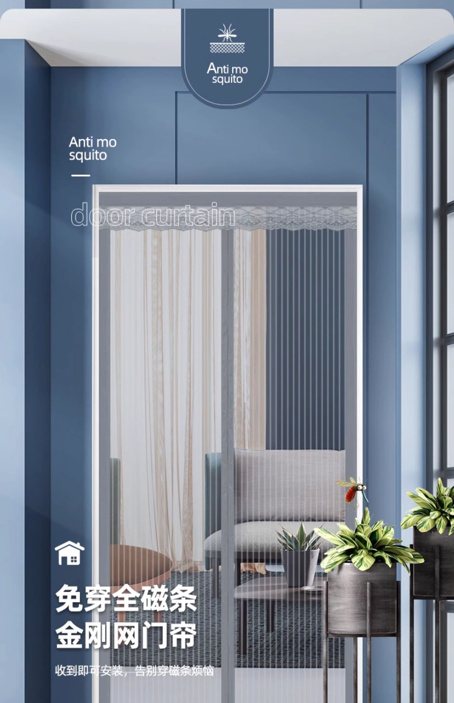 벨크로 안티 모기 도어 커튼 전체 자기 스트립 여름 홈 비행 방지 스크린 스크린 도어 도어 자체 접착 자기 흡수 무료 변경스토어 가기