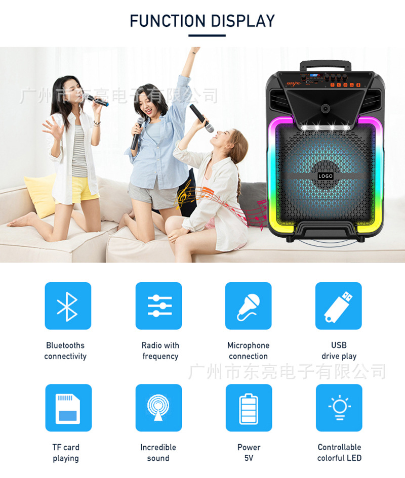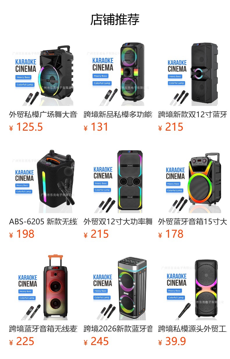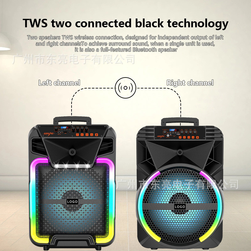 跨境私模户外广场舞拉杆音箱家用充电式无线蓝牙K歌低音炮大音响