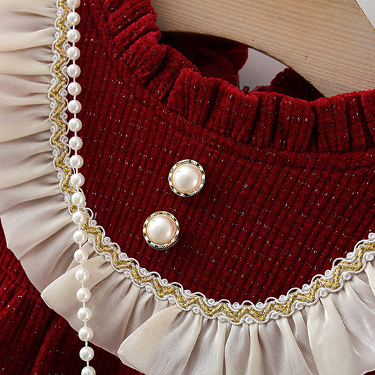 여자 기모 원피스 2024 새로운 어린이 서양식 치마 아기 소녀 가을과 겨울 공주 신년 원피스 5025