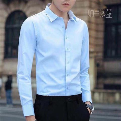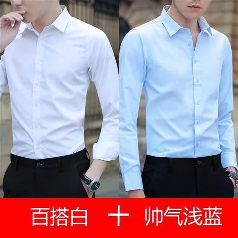 买一送一春夏季男士衬衫长袖韩版休闲衬衣男商务修身白色短袖磊红