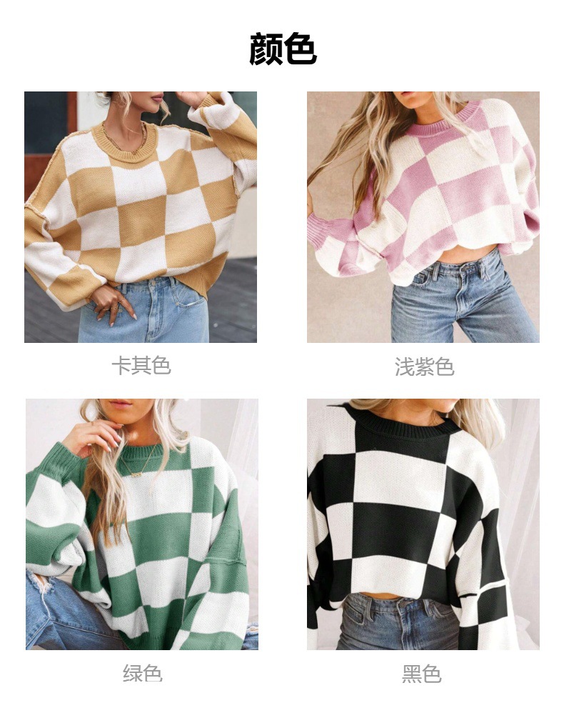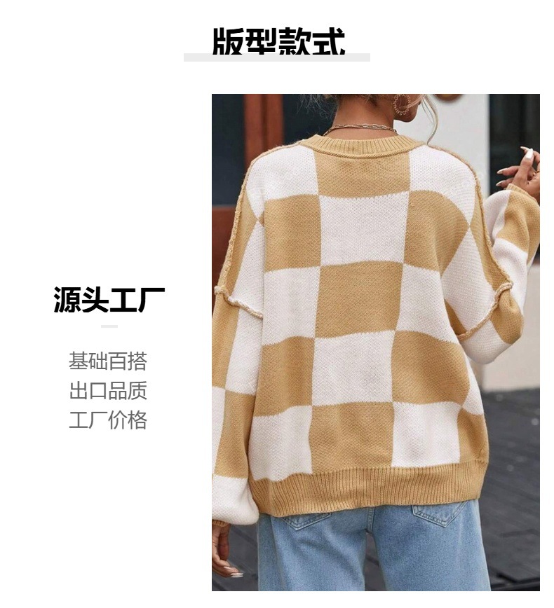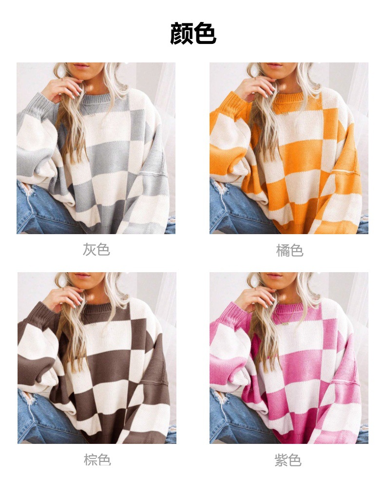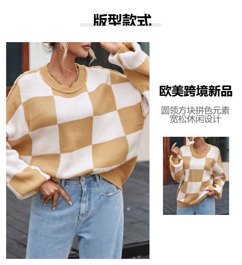 2024 아마존 새로운 가을 옷 여성용 니트 스웨터 스퀘어 요소 크루 넥 루즈 스웨터 유럽과 미국 독립 스테이션스토어 가기