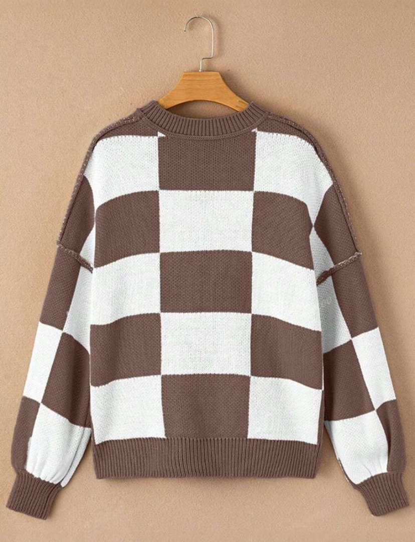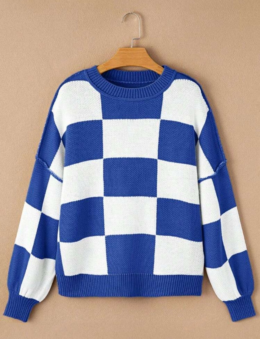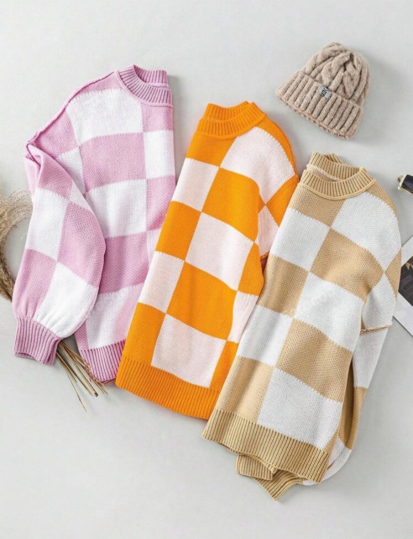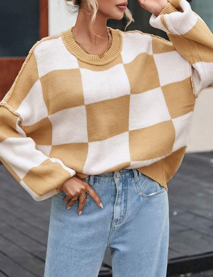 2024 아마존 새로운 가을 옷 여성용 니트 스웨터 스퀘어 요소 크루 넥 루즈 스웨터 유럽과 미국 독립 스테이션스토어 가기