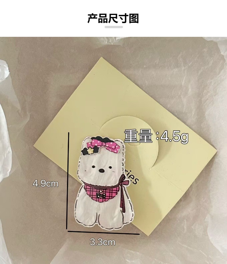 달콤한 멋진 스타일 아크릴 전신 개 머리핀 달콤한 귀여운 가리 스타일 사이드 클립 헤어핀 가을과 겨울 새로운 스타일 헤어 액세서리스토어 가기
