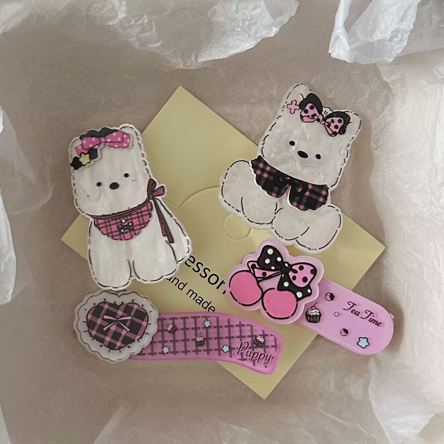 달콤한 멋진 스타일 아크릴 전신 개 머리핀 달콤한 귀여운 가리 스타일 사이드 클립 헤어핀 가을과 겨울 새로운 스타일 헤어 액세서리