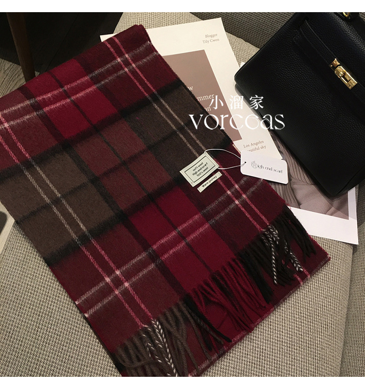 영국식 에든버러 레드 클래식 울 스카프 여성용 WOOL100 캐시미어 목도리 이중 목적 따뜻한 목스토어 가기