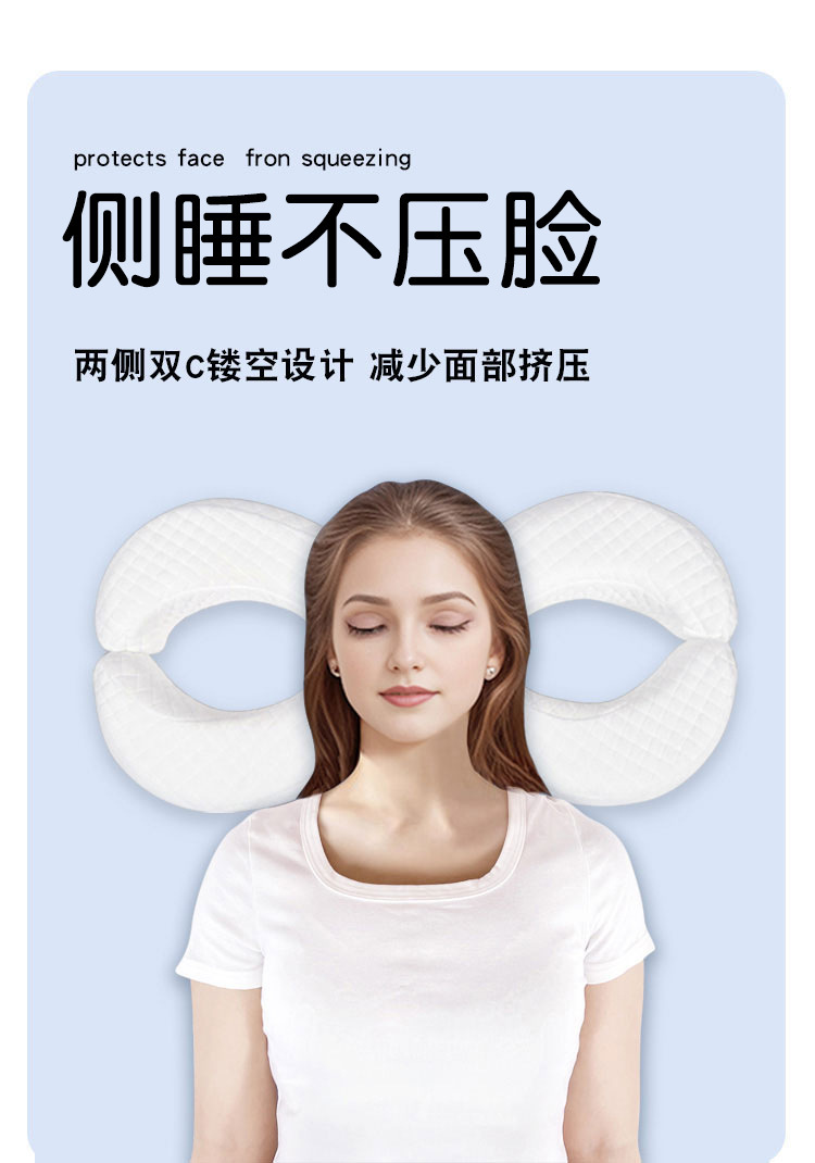 뷰티 케어 용 측면 수면 베개, 얼굴에 압력 없음, 주름 방지 개선, 법률 라인, 목 방지 라인, 눈 보호 베개, 귀 피부 관리 베개, 얼굴 보호 베개