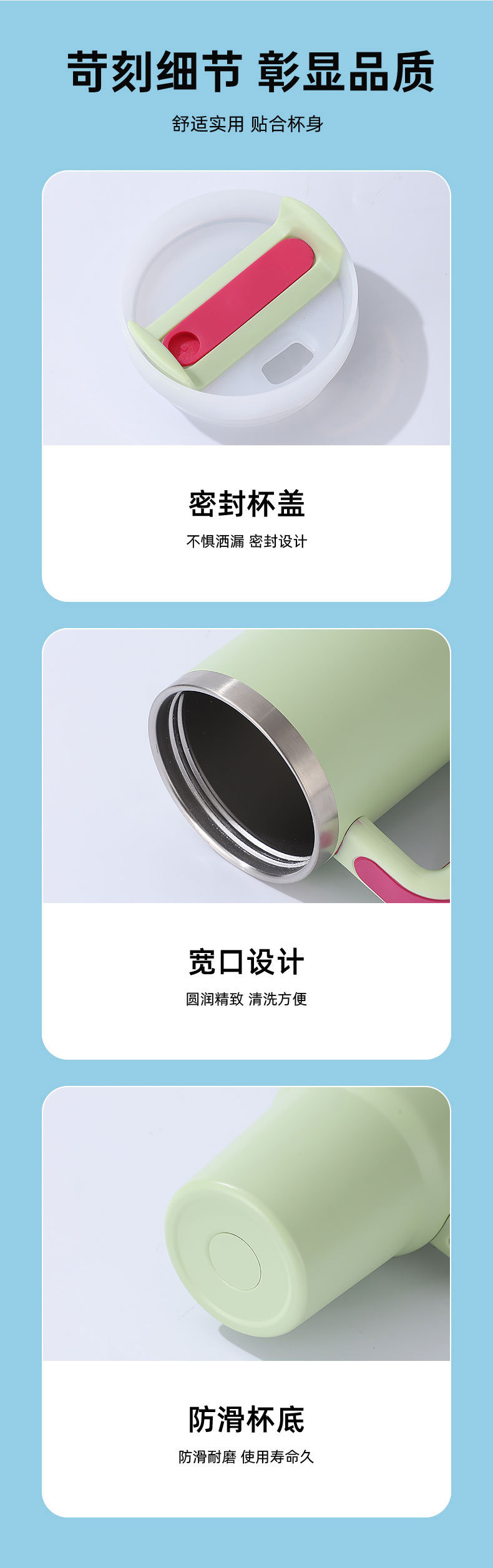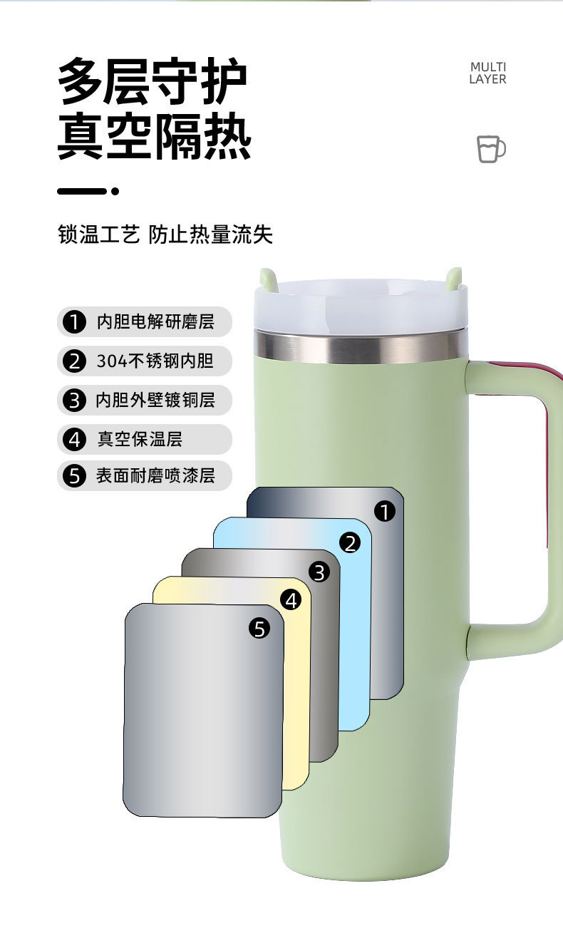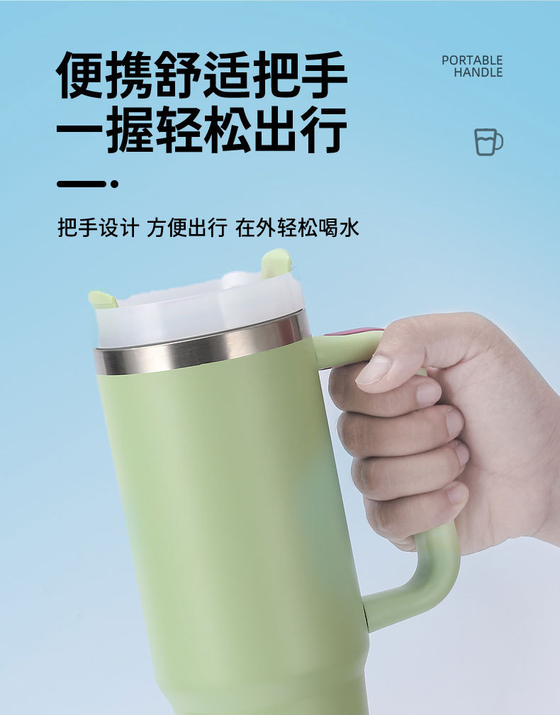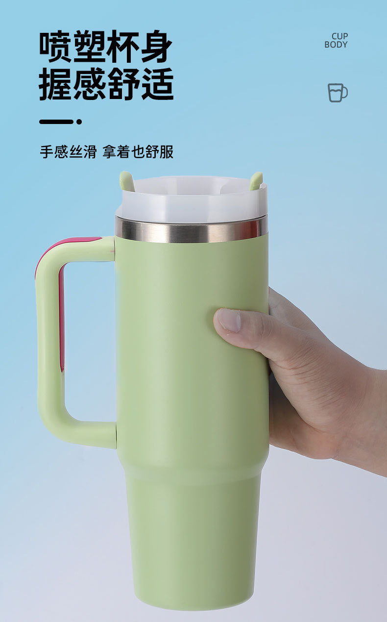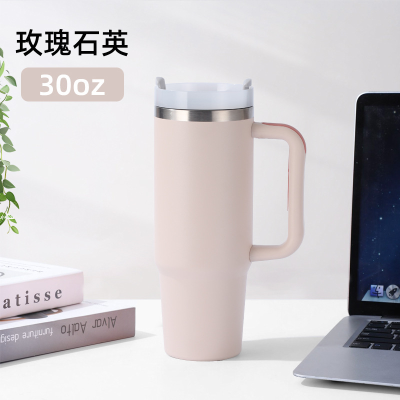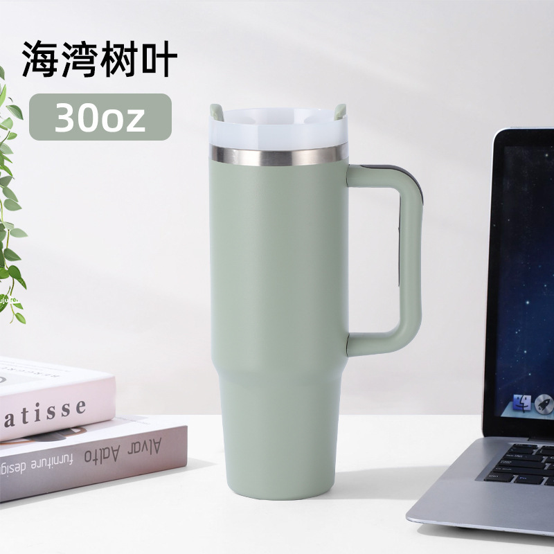 국경 간 새로운 2 세대 30 온스 자동차 컵 야외 휴대용 대용량 핸들 아이스 컵 가정용 짚 보온병 컵