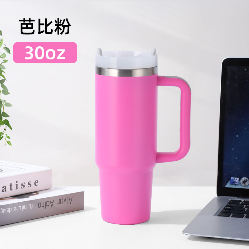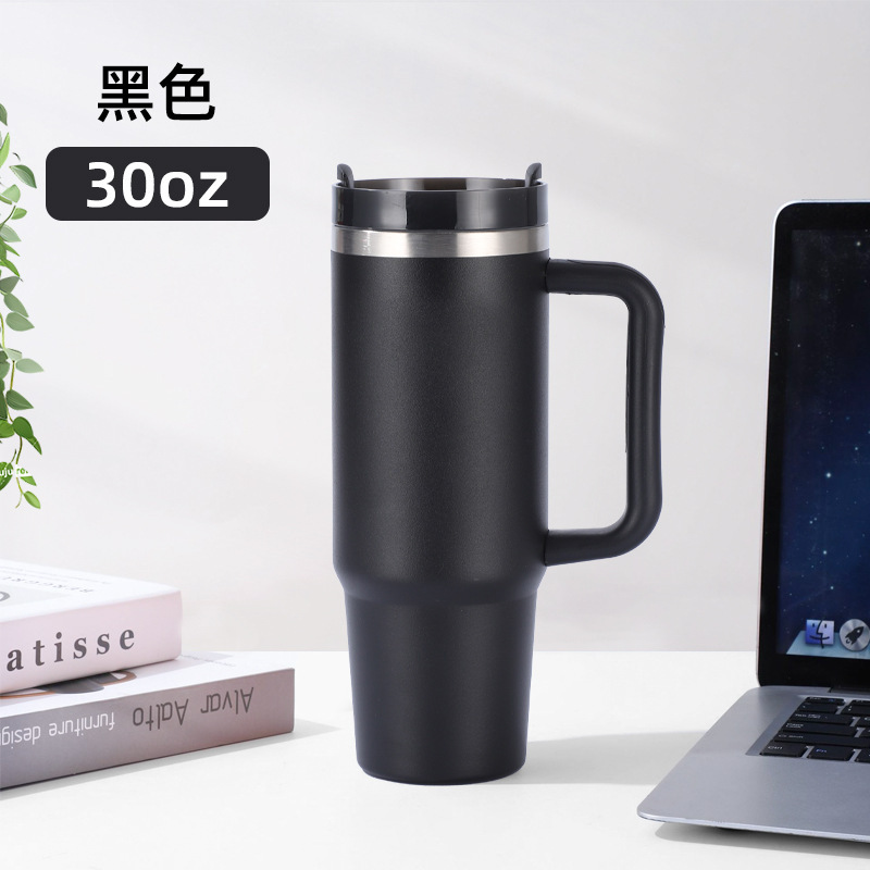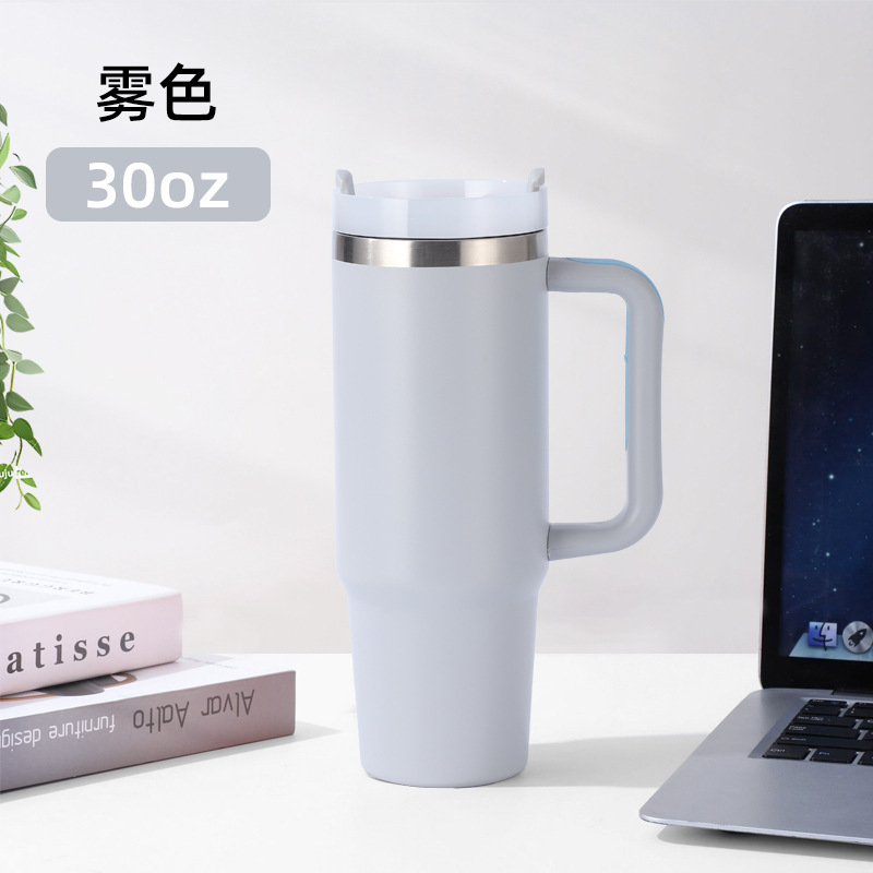 국경 간 새로운 2 세대 30 온스 자동차 컵 야외 휴대용 대용량 핸들 아이스 컵 가정용 짚 보온병 컵스토어 가기