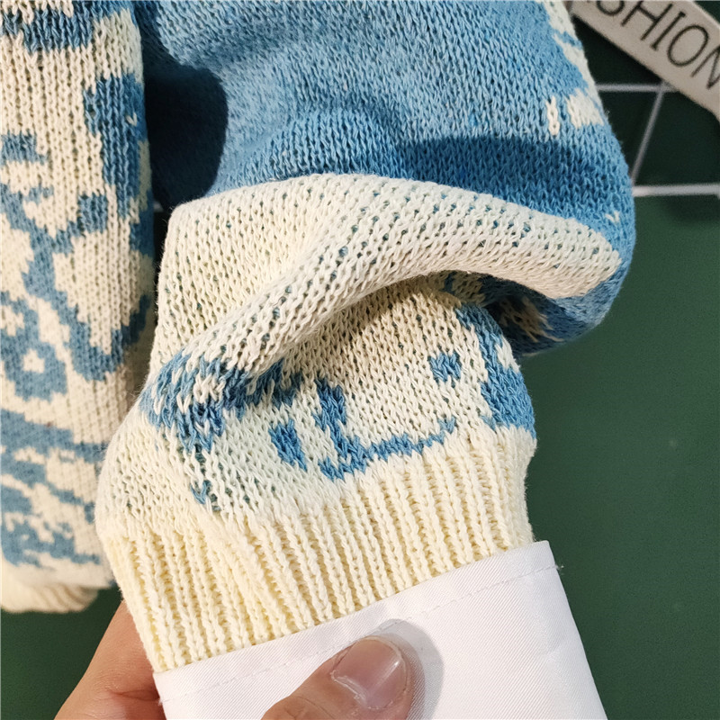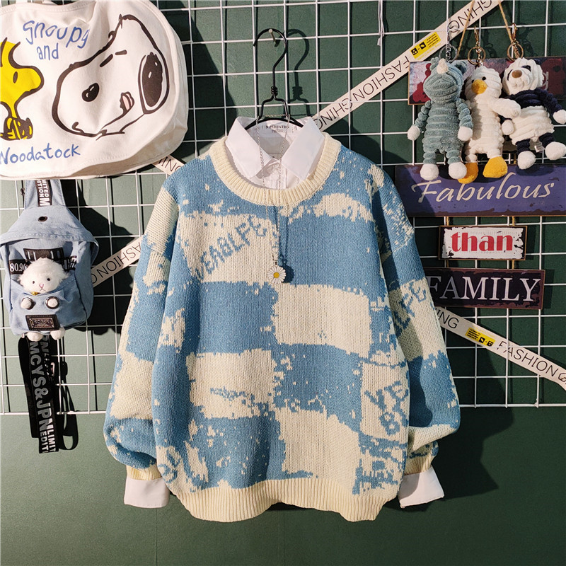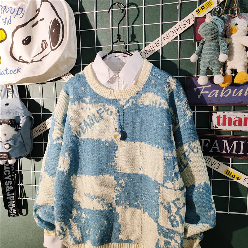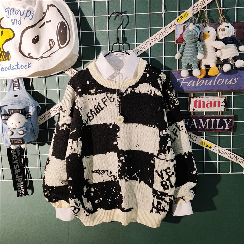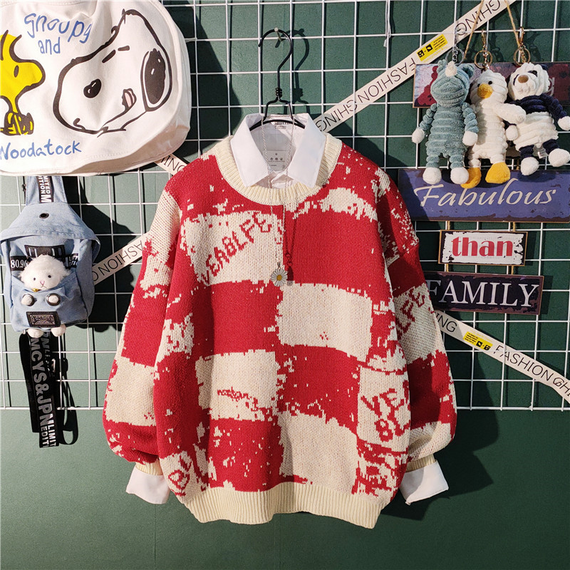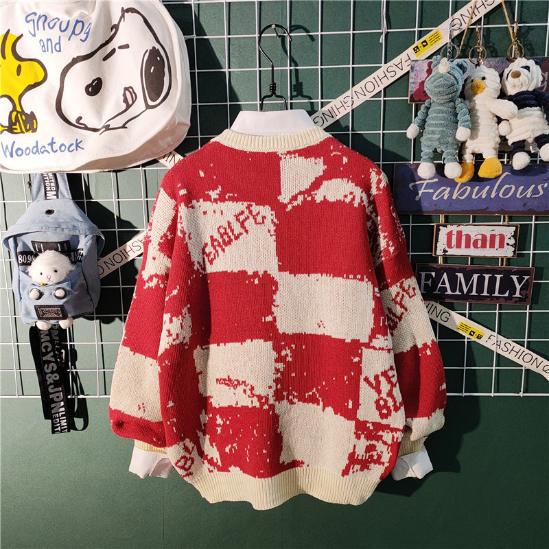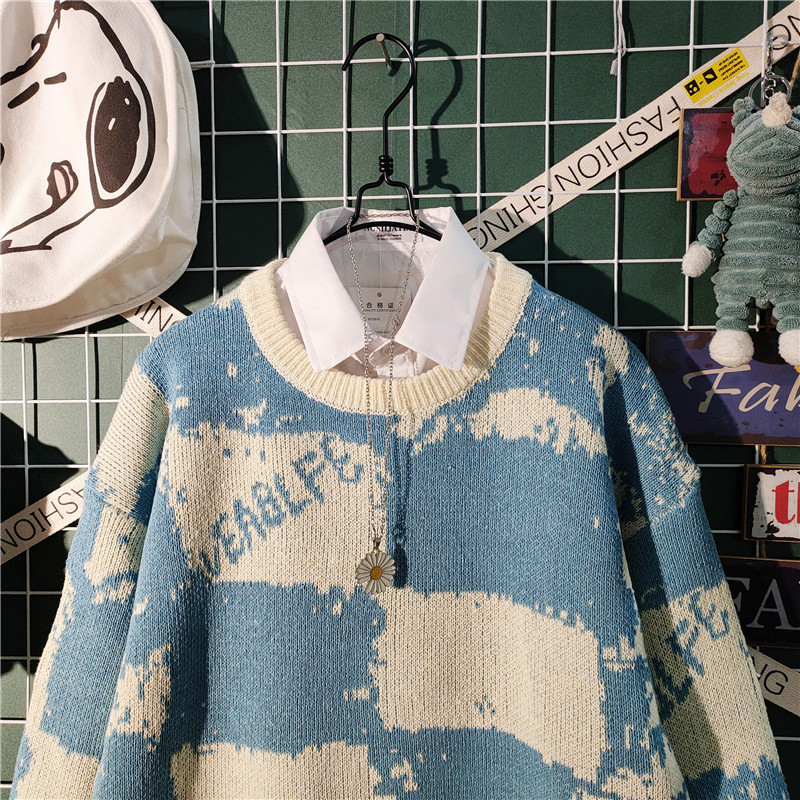 가을과 겨울 새로운 하이 엔드 센스 게으른 스타일 스웨터 남성용 트렌디 브랜드 느슨한 일본식 레트로 컬러 컬러 스웨터 남성용스토어 가기