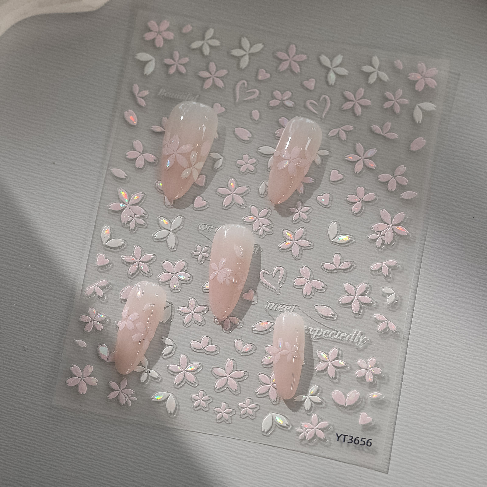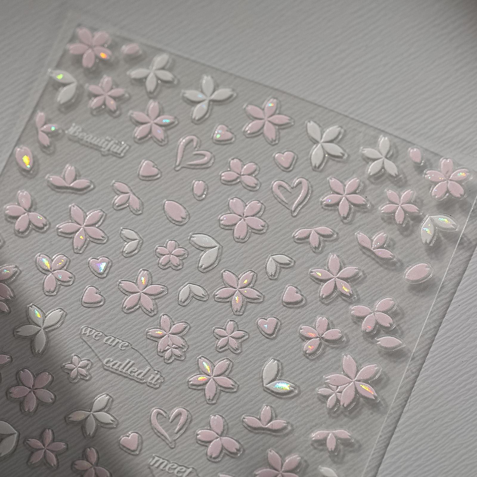 새로운 나비 핑크 벚꽃 네일 아트 스티커 매직 컬러 쉘 라이트 꽃잎 접착제 네일 스티커 작은 꽃 네일 아트 스티커