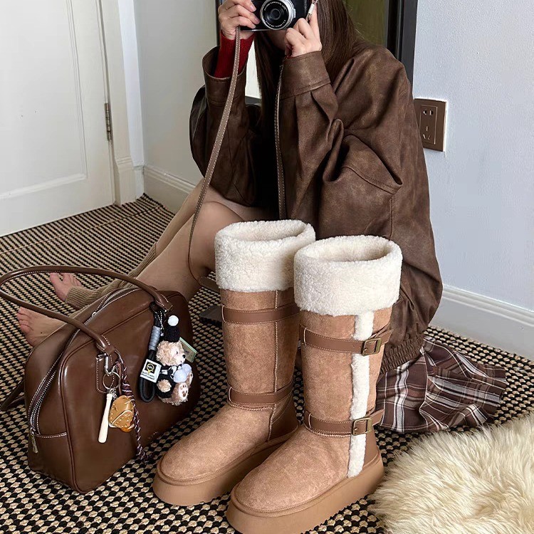 두꺼운 바닥 긴 튜브 스노우 부츠 여성의 2024 새로운 북동쪽 큰면 부츠 겨울 미끄럼 기모 두꺼운 높은 튜브 스노우 코튼스토어 가기