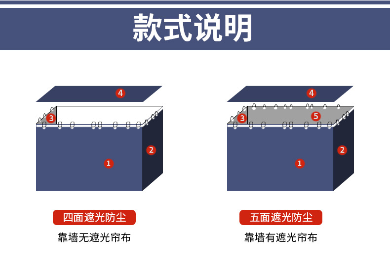 • 네이비 솔리드 컬러-100% 암막커튼 [벽면 암막커튼] 5면 암막✅ 가지