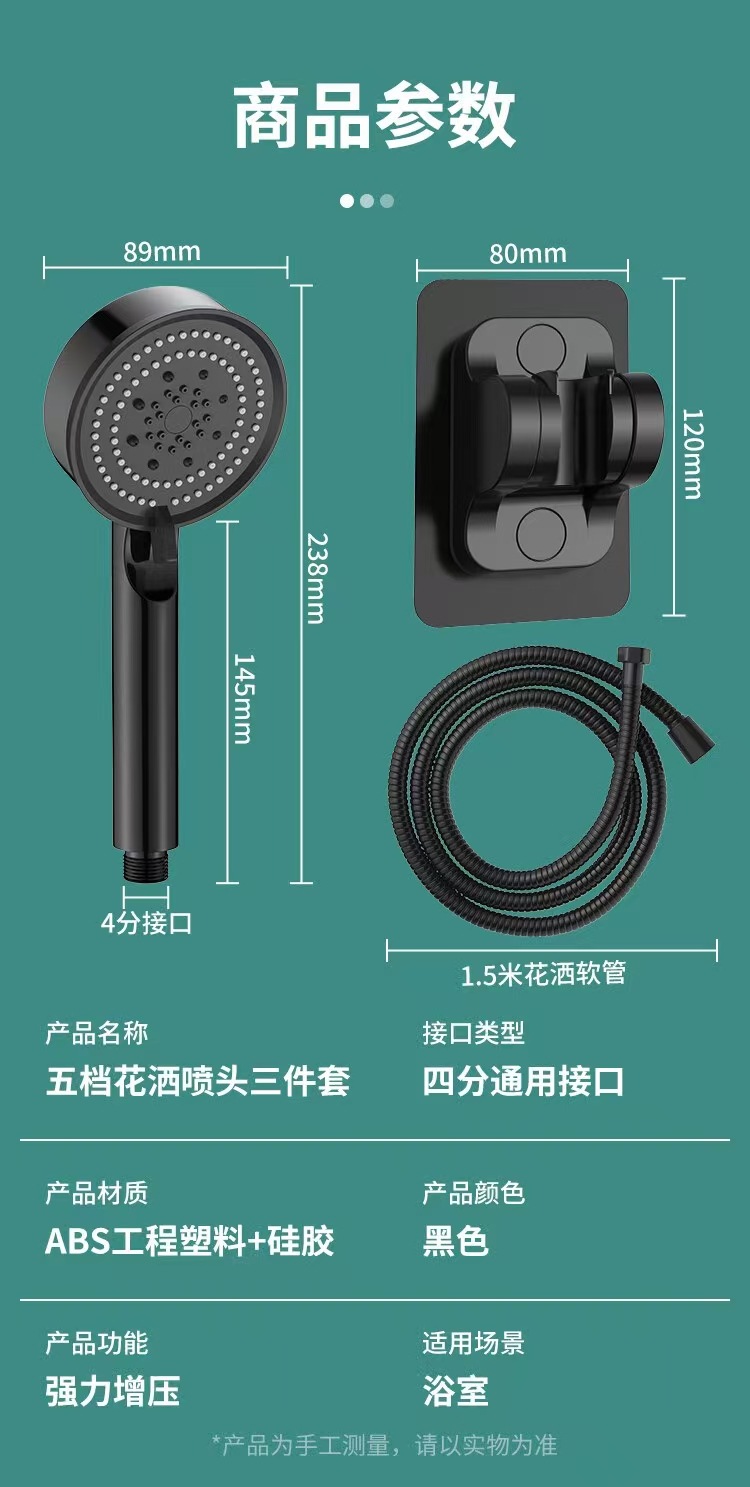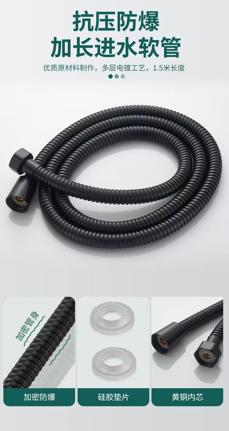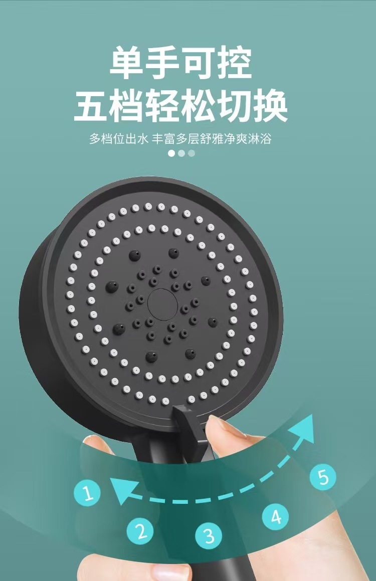 • ★【익스트림 블랙】 5단 수압 조절 샤워기 + 1.5m 방폭 샤워 호스 + 거치대