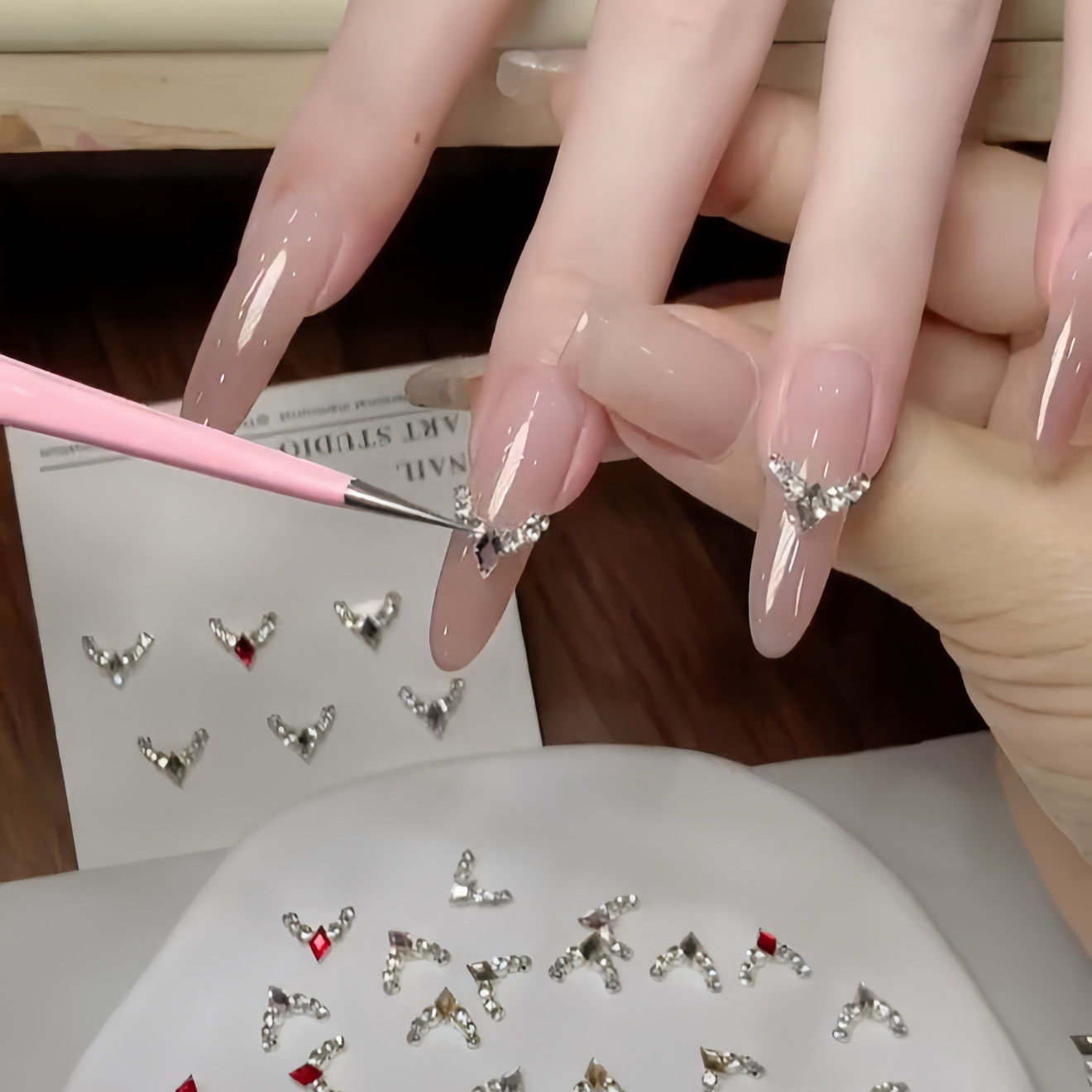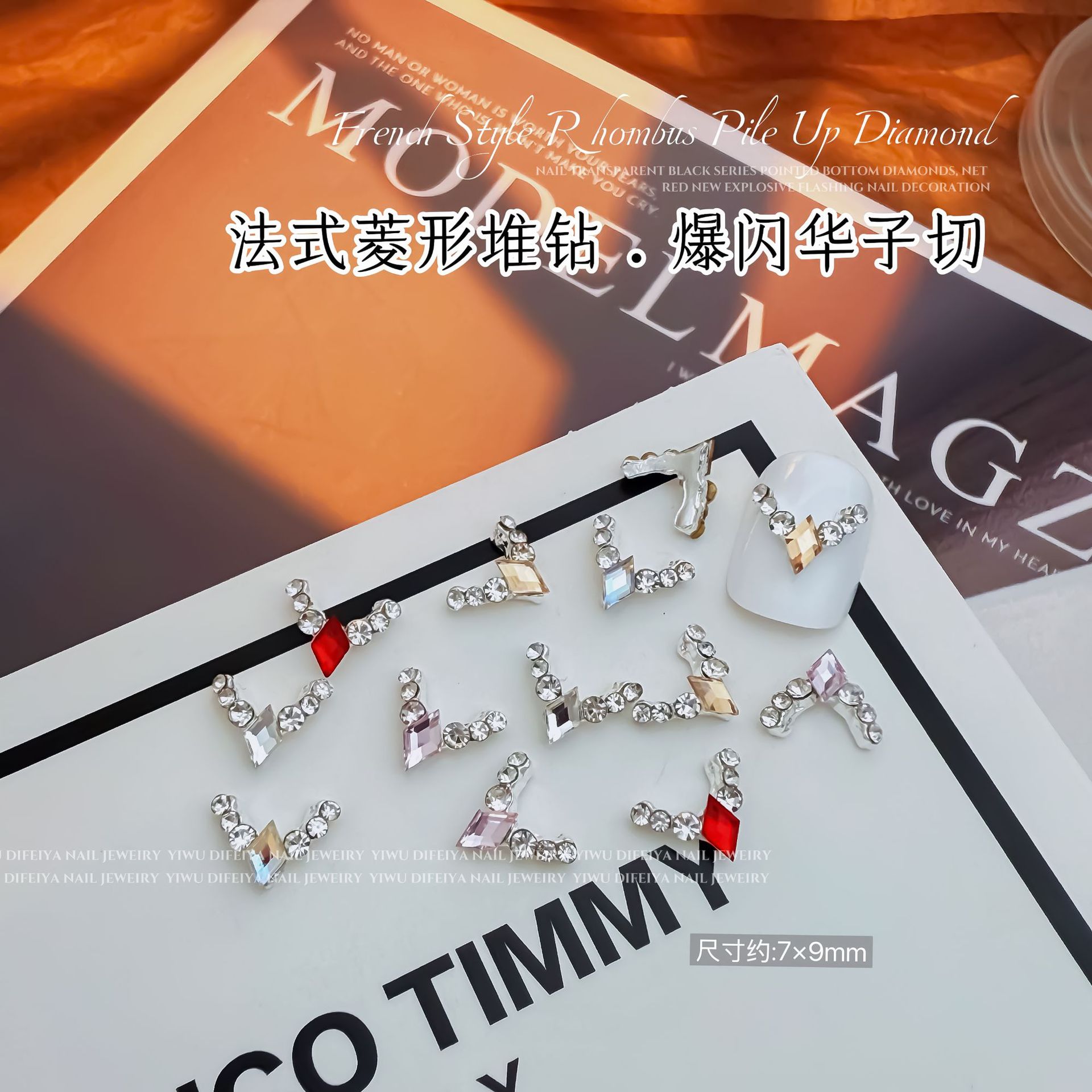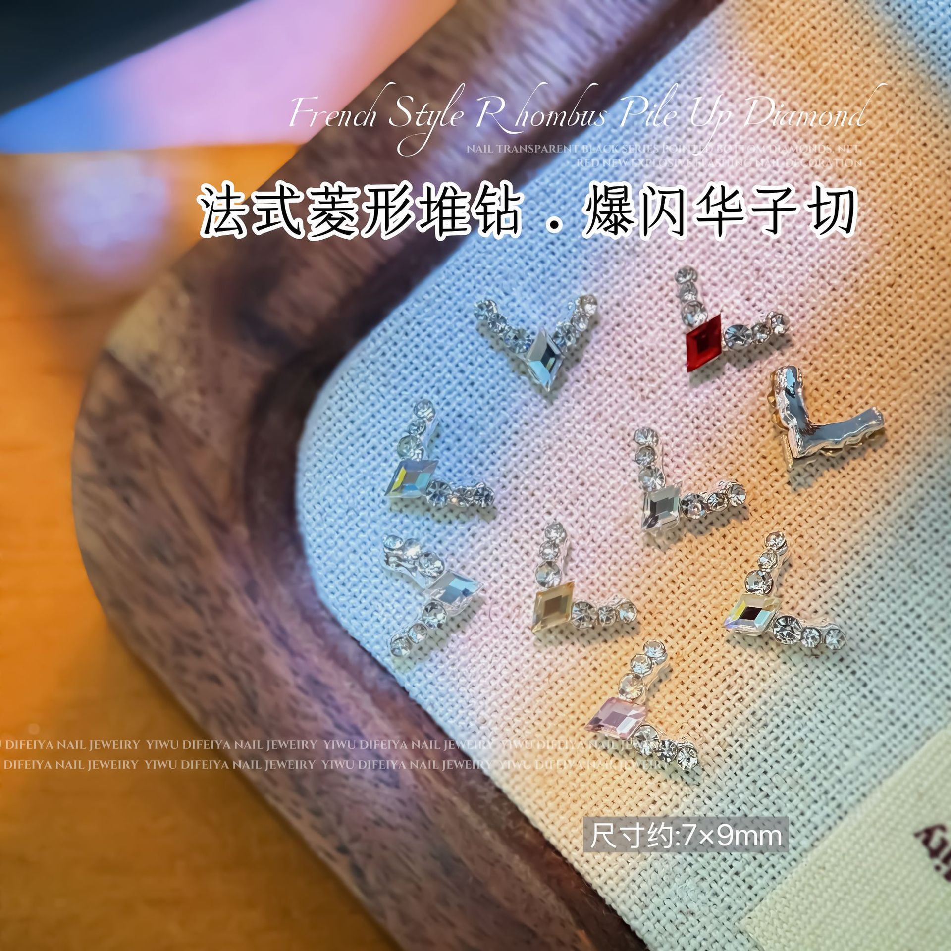 새로운 Rhombic 프랑스 마무리 드릴 네일 아트 쥬얼리 Huanzi 컷 플래시 V 자형 드릴 네일 합금 드릴 장식품스토어 가기