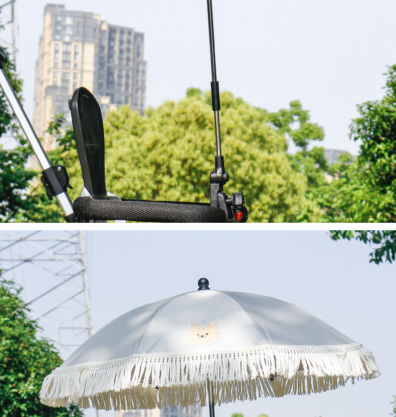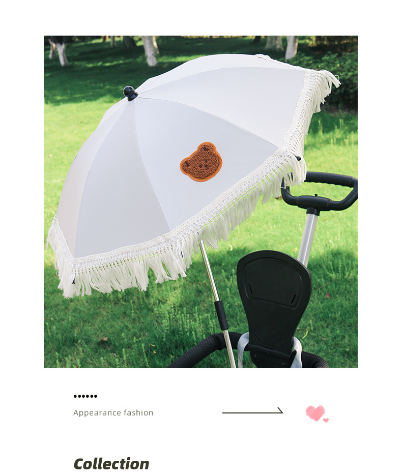 아기 마차 야외 파라솔 레이스 태양 보호 우산 고정 트롤리 특수 어린이 자동차 우산 걷는 아기 유물