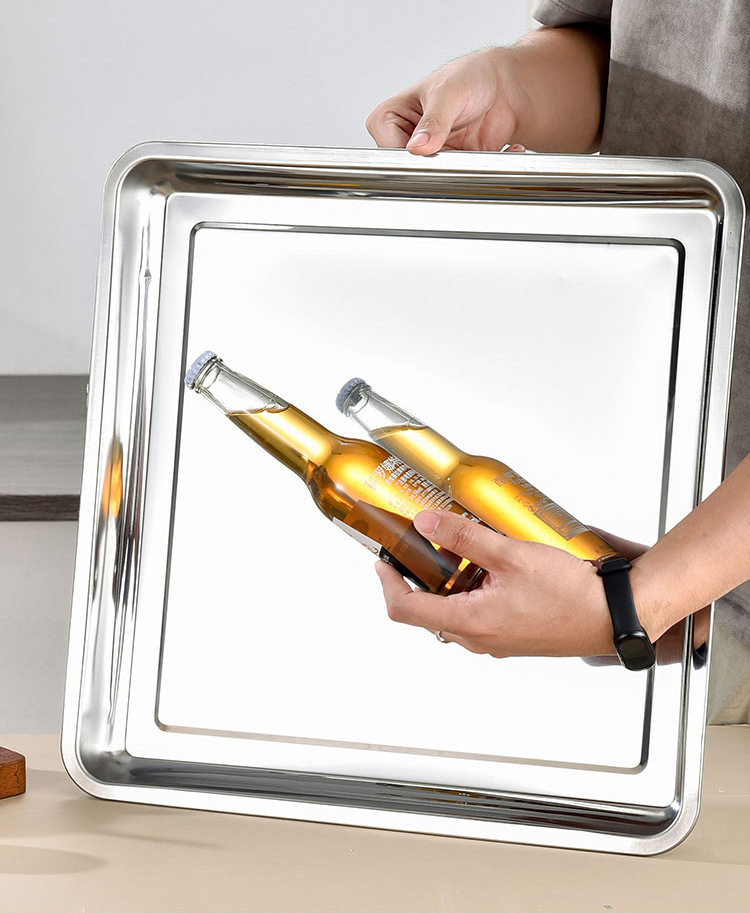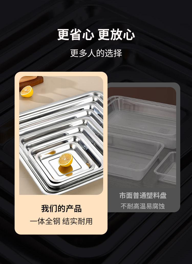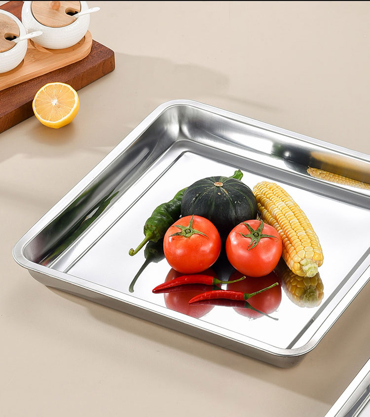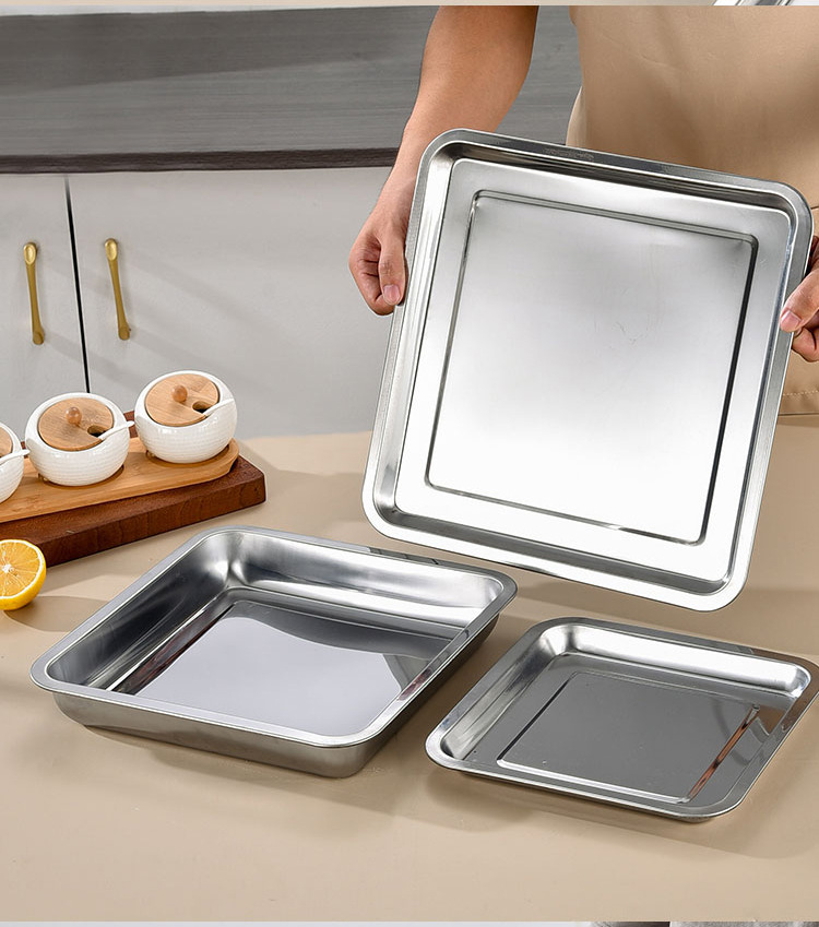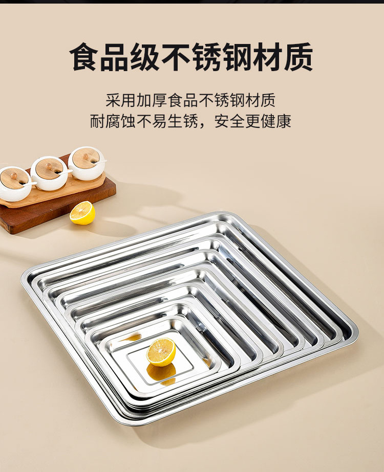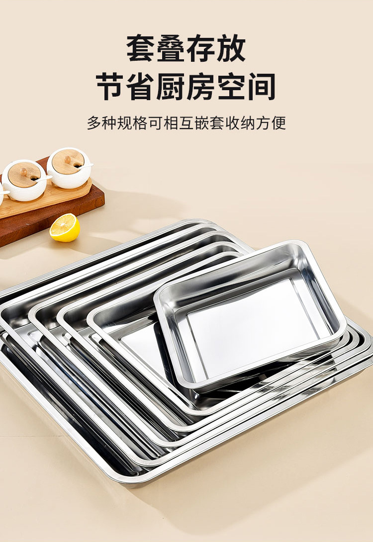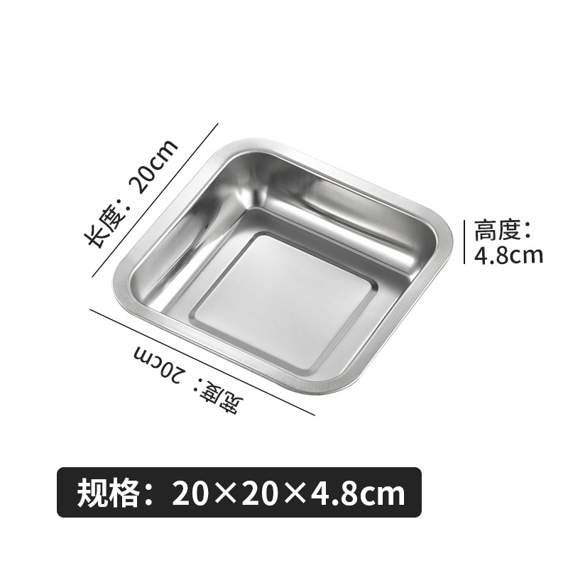 Jin Jiada 스테인레스 스틸 스퀘어 플레이트 플랫 하단 바베큐 플레이트 만두 플레이트 멀티 사용 스퀘어 플레이트 두꺼운 스퀘어 플레이트스토어 가기