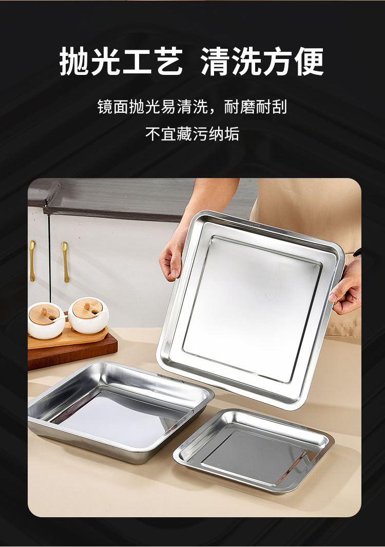 Jin Jiada 스테인레스 스틸 스퀘어 플레이트 플랫 하단 바베큐 플레이트 만두 플레이트 멀티 사용 스퀘어 플레이트 두꺼운 스퀘어 플레이트