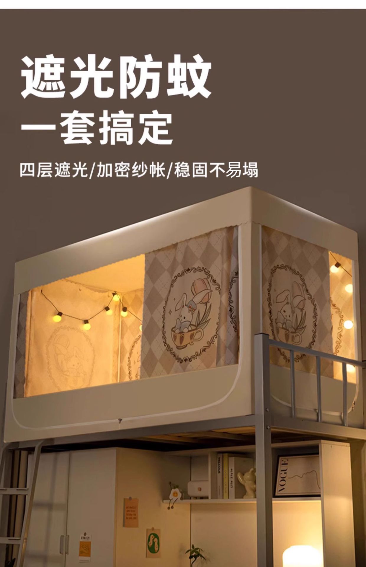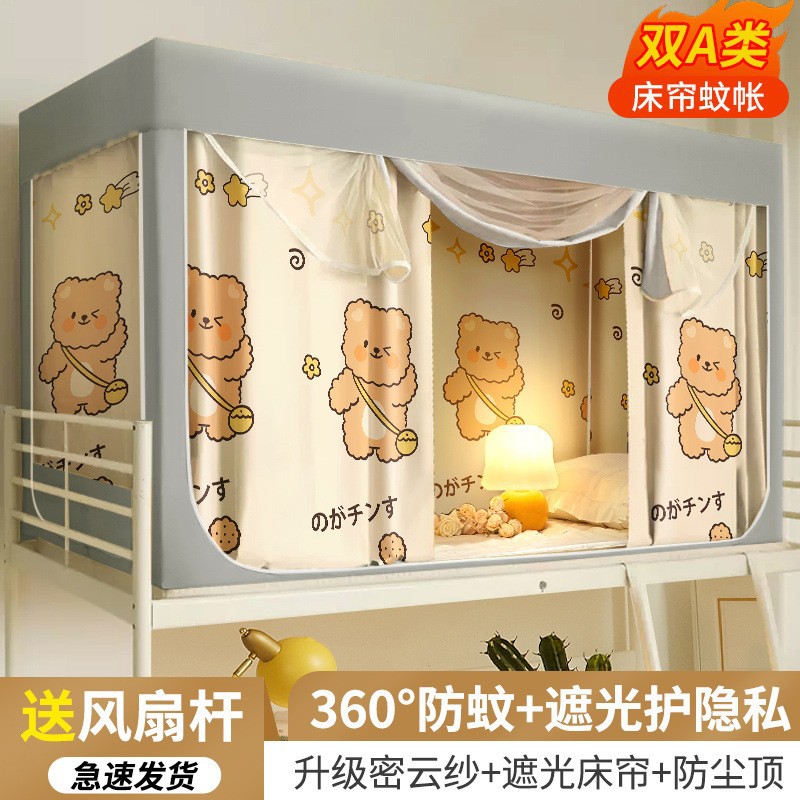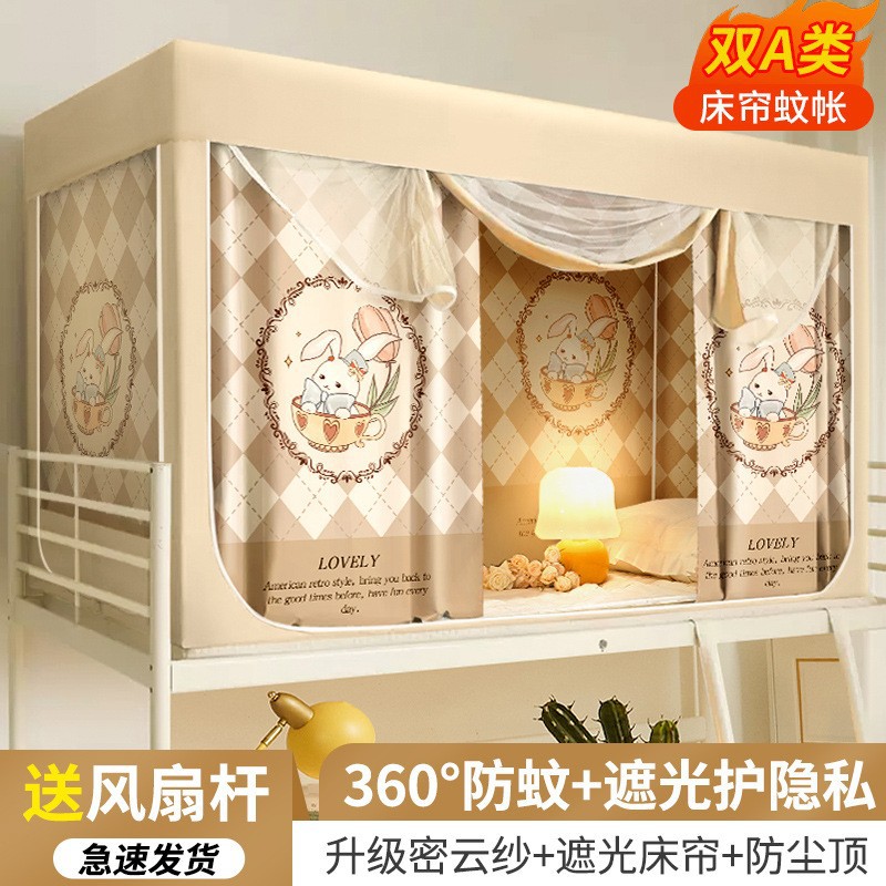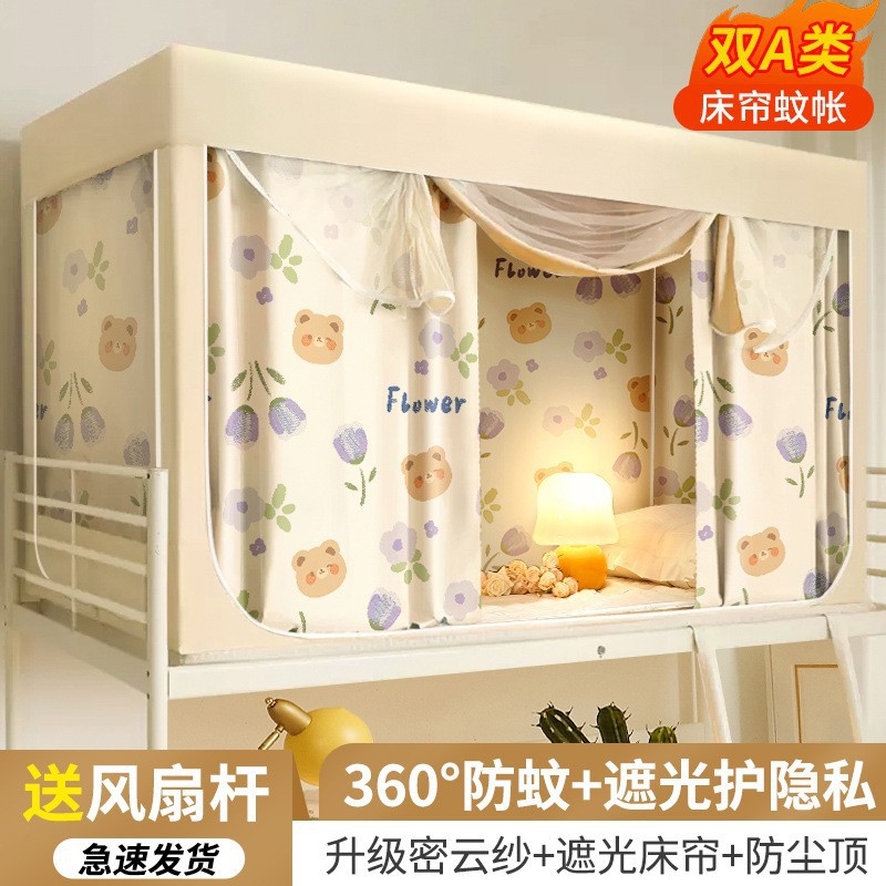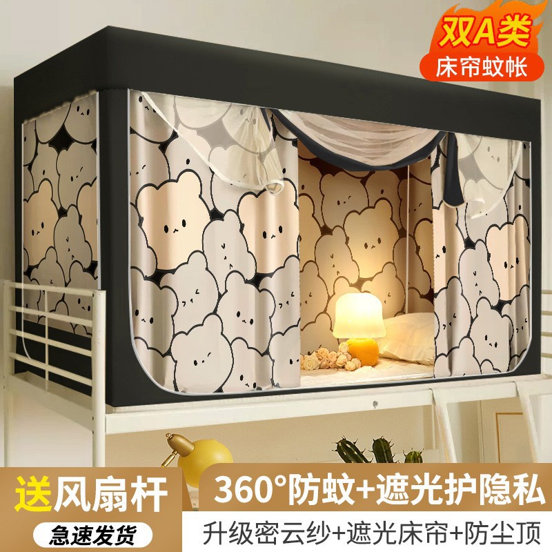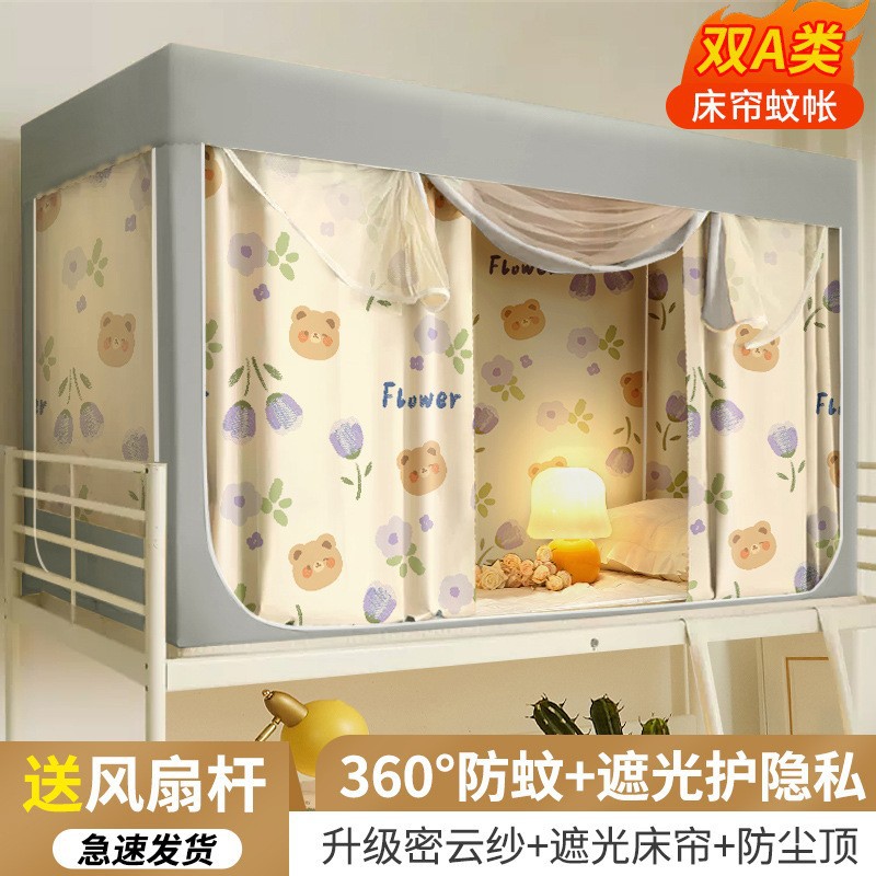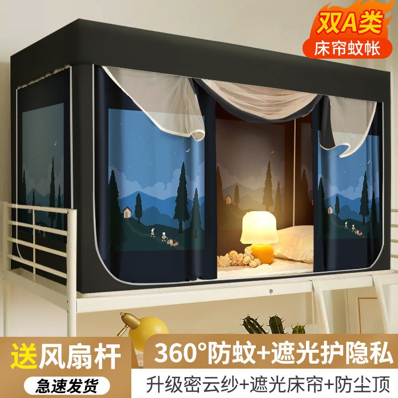 대학생 기숙사 침대 커튼 통합 모기장 강한 음영 상부 이층 및 하부 이층 대괄호 올 인 2024 새로운 대학
