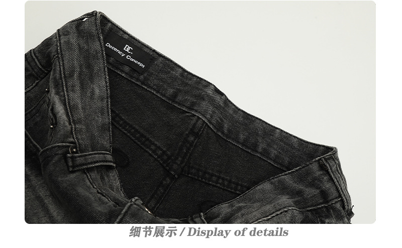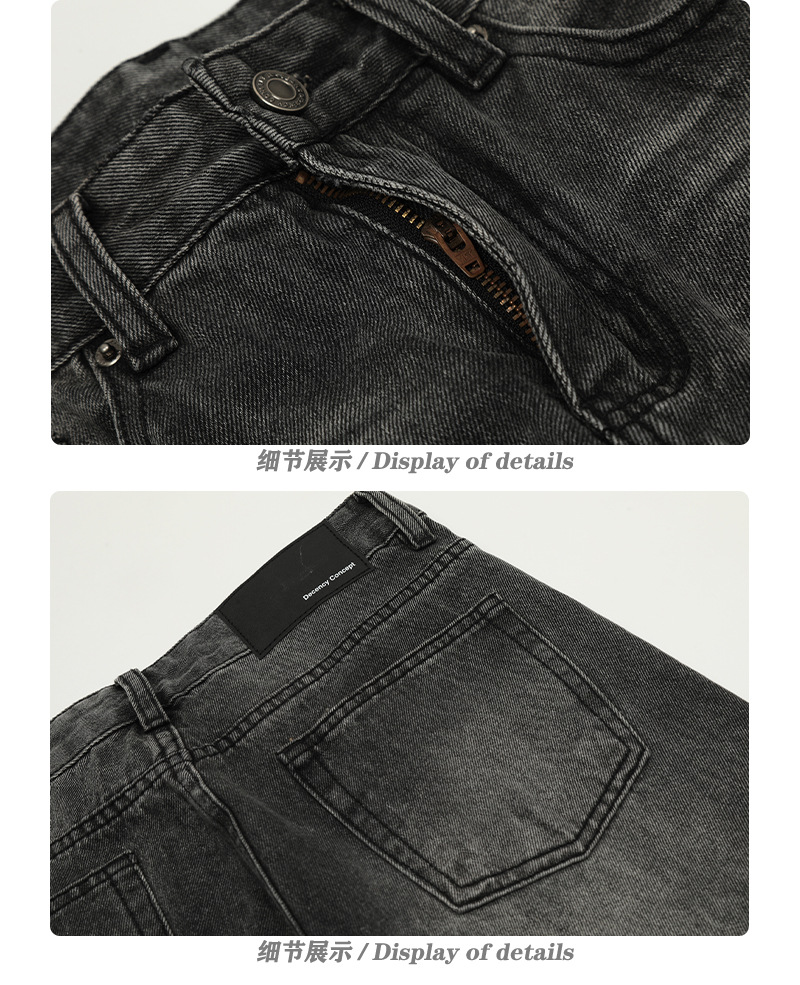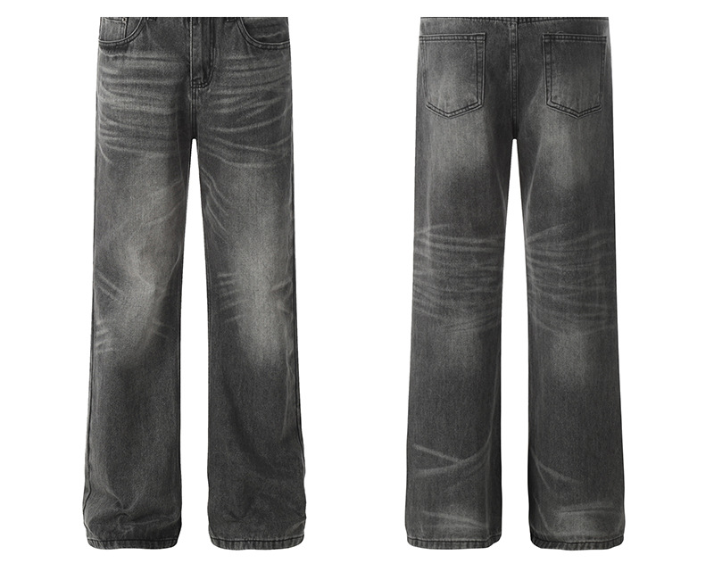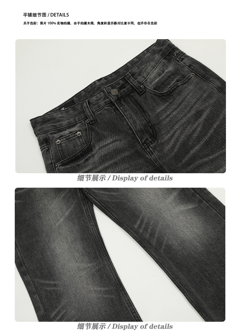 G6479 아메리칸 레트로 2024 트렌디 워싱 및 디스트레스드 디자인 하이엔드 남성 스트레이트 레그 마이크로 플레어 데님 바지스토어 가기
