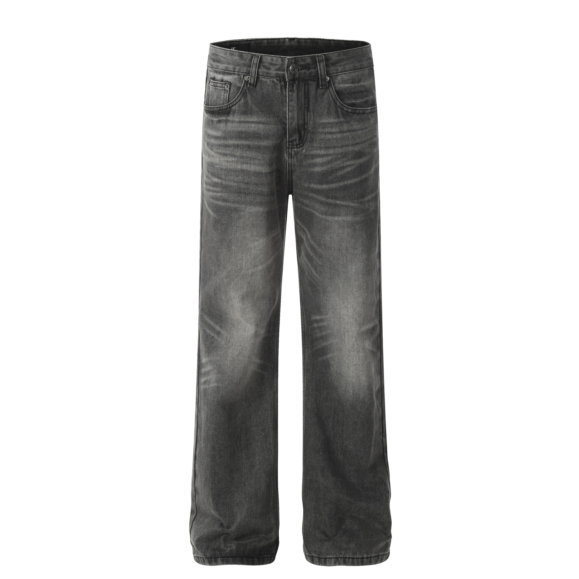 G6479 아메리칸 레트로 2024 트렌디 워싱 및 디스트레스드 디자인 하이엔드 남성 스트레이트 레그 마이크로 플레어 데님 바지