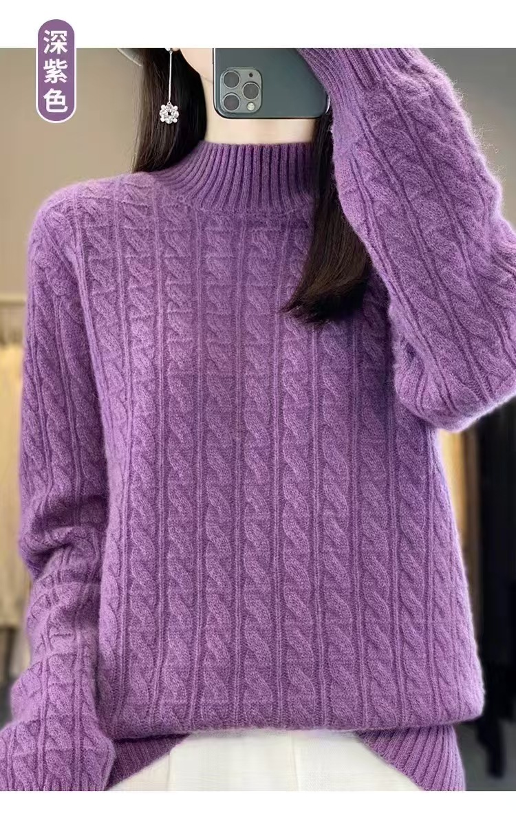 캐시미어 스웨터 여성 24 가을과 겨울 새로운 절반 높은 칼라 베이스 셔츠 두꺼운 니트 스웨터 내부 재킷 느슨한 솔리드 컬러 보호