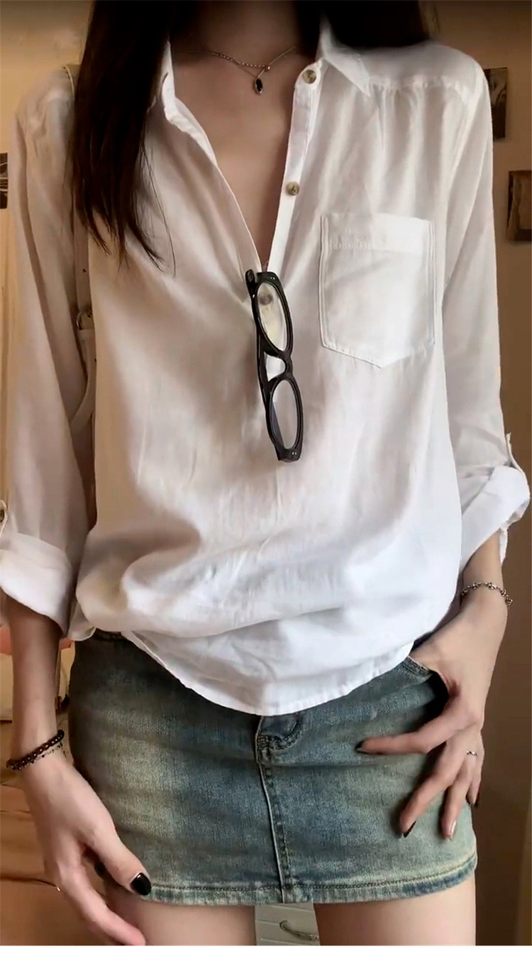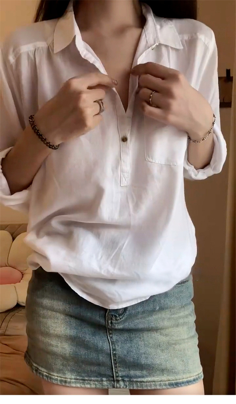 여성을위한 프렌치 화이트 긴팔 자외선 차단 얇은 폴로 셔츠 2025 초가을 새로운 고급 기질 탑 셔츠