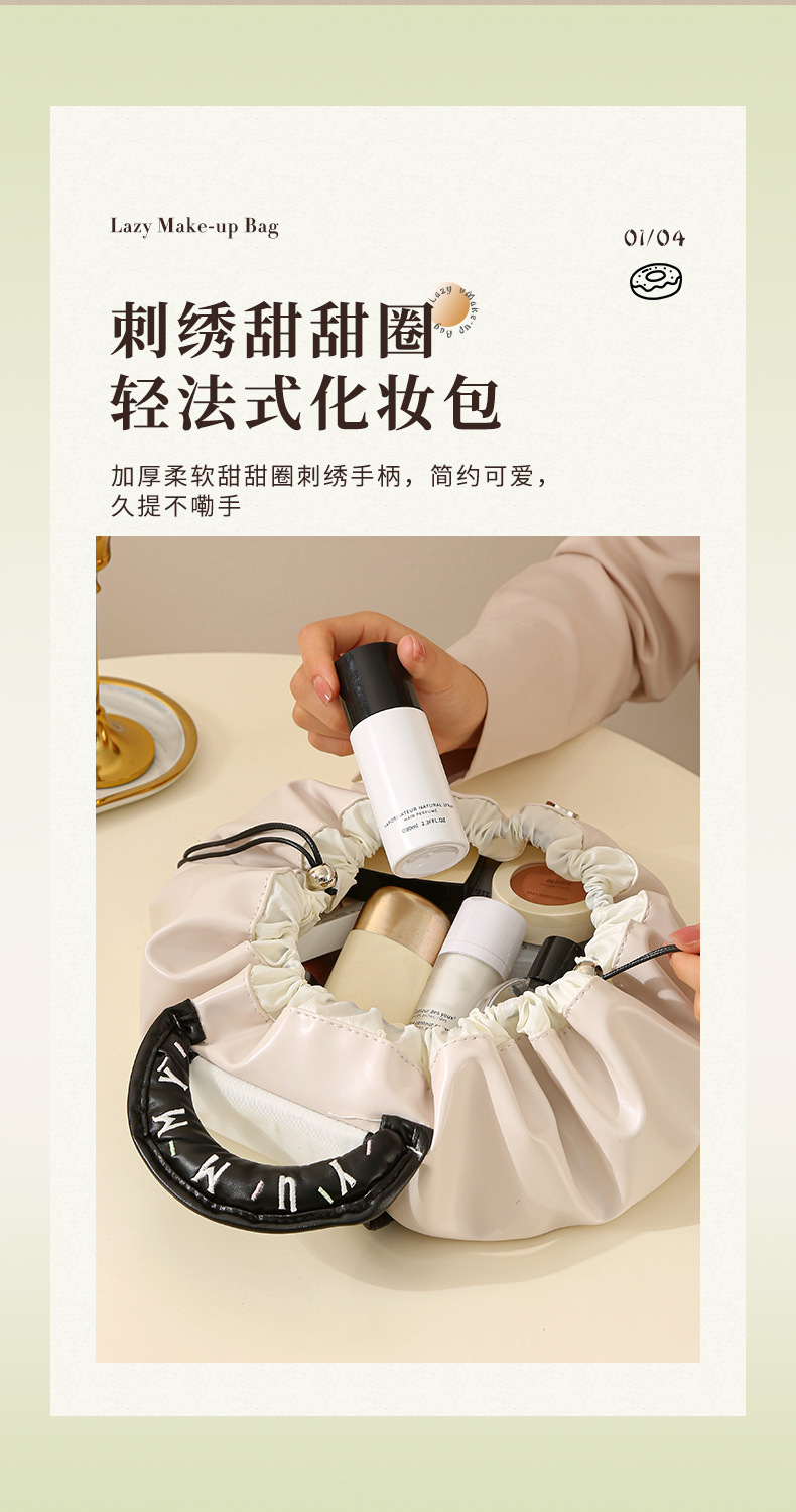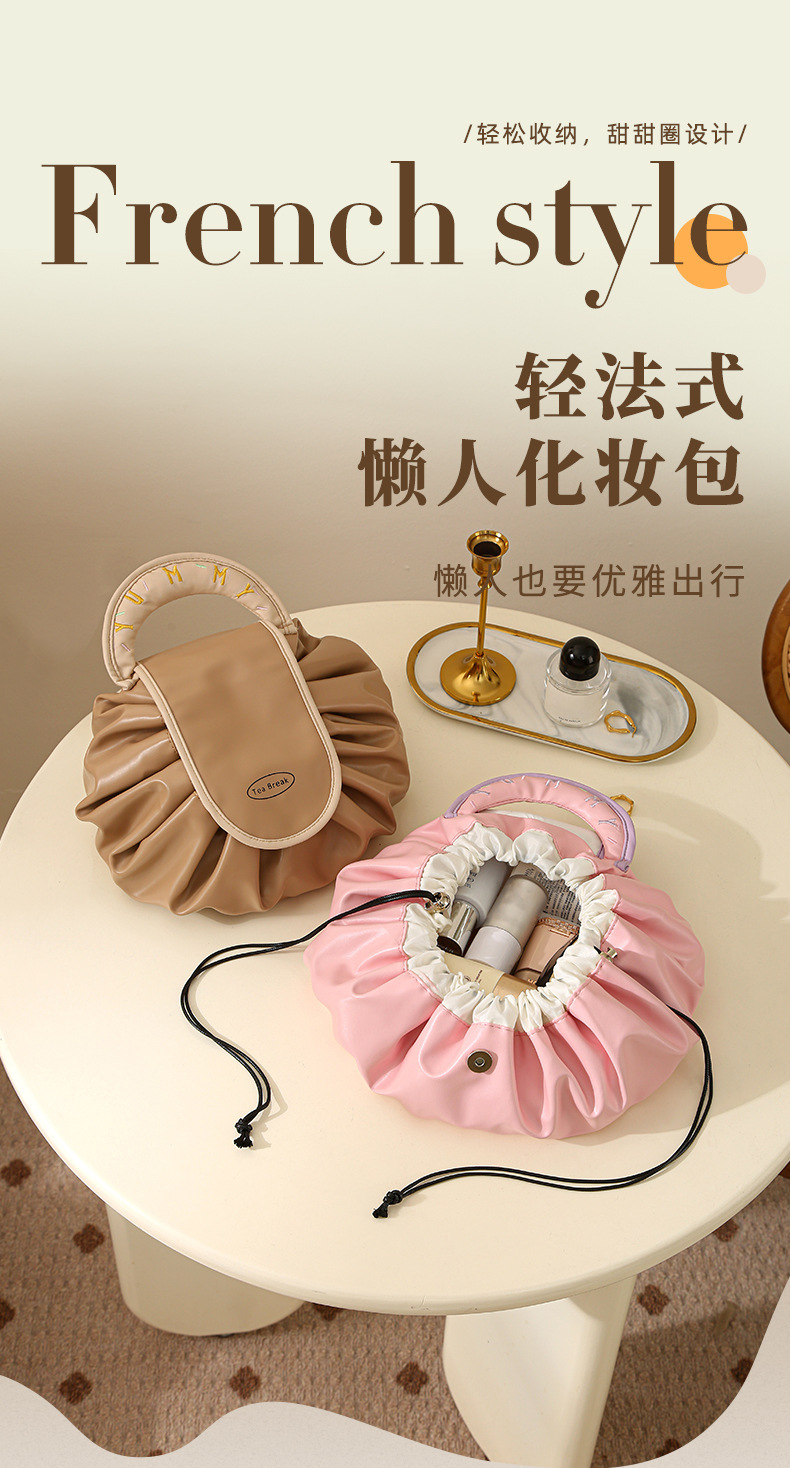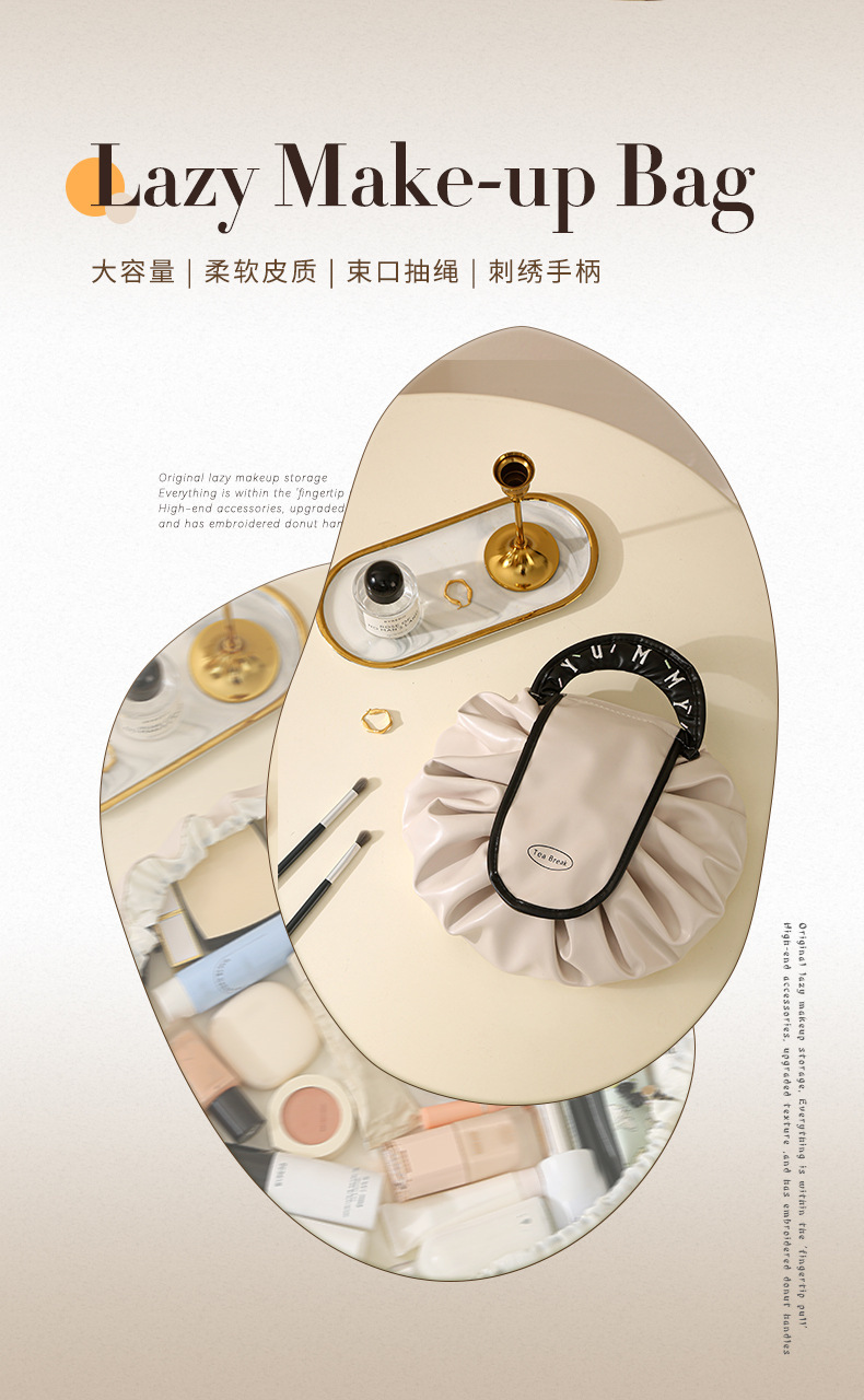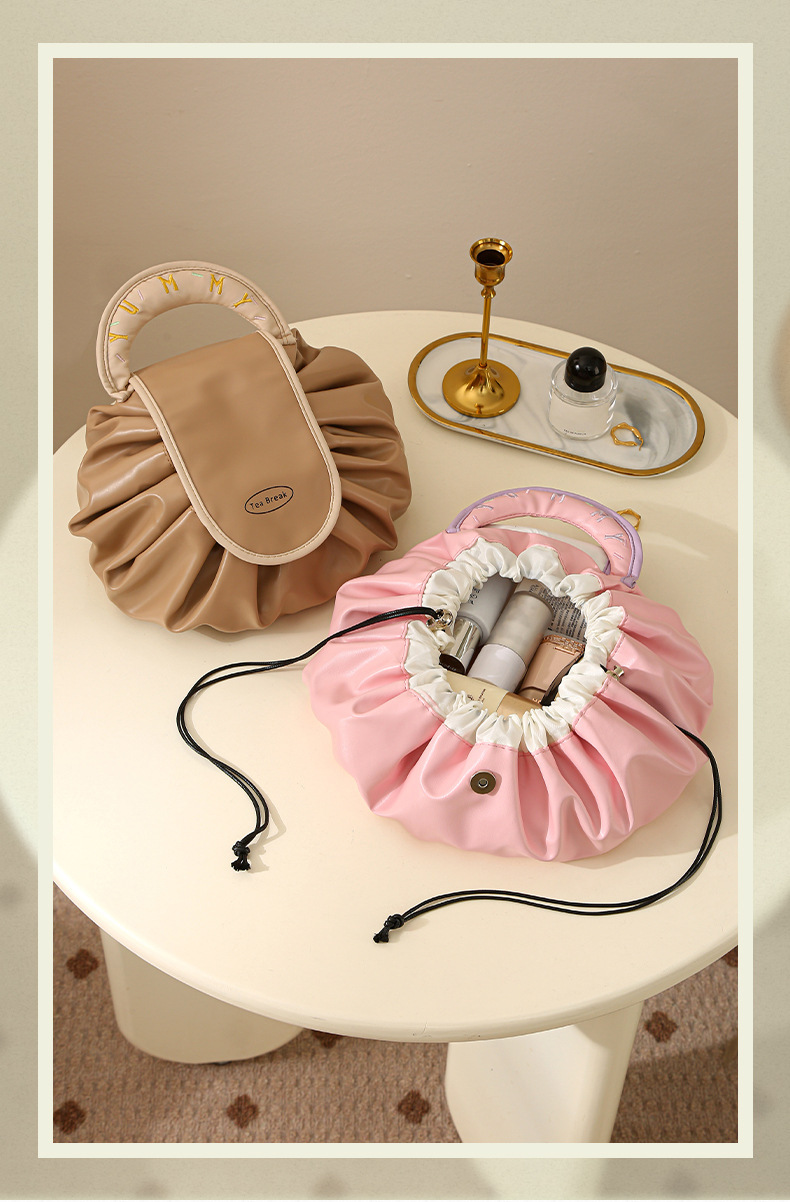 • 게으른 졸라매는 끈 화장품 가방 - 우유 살구 흰색