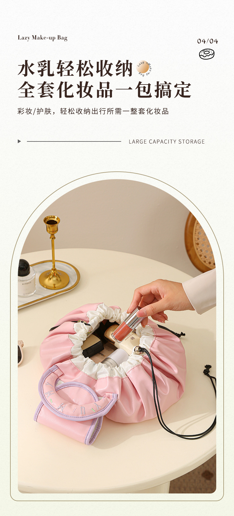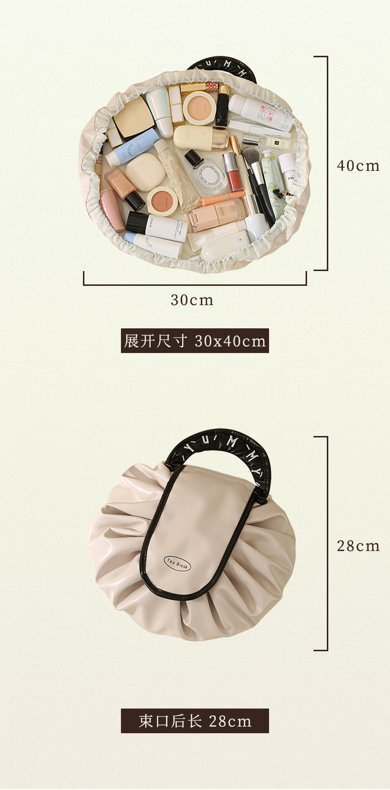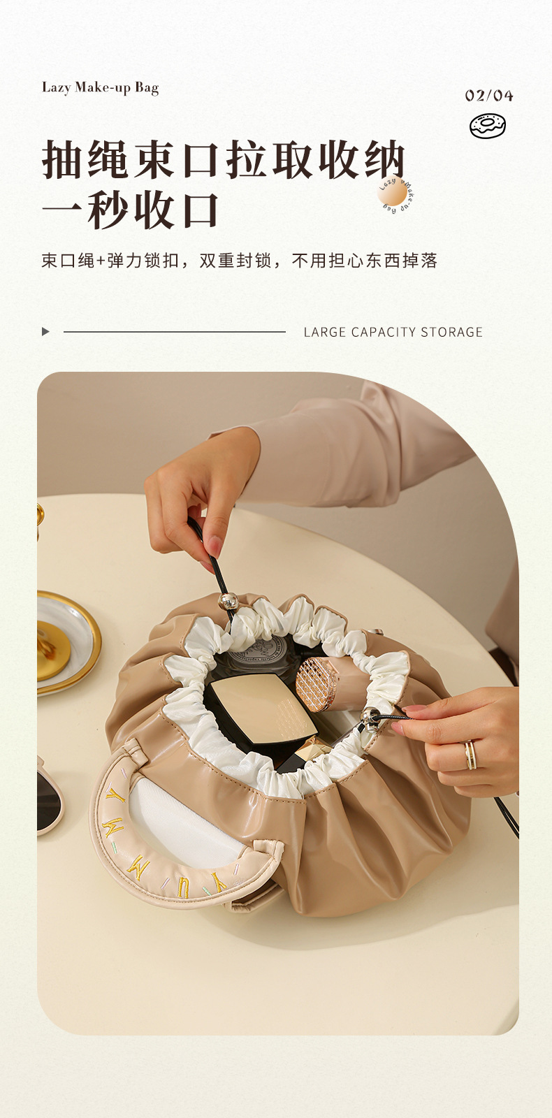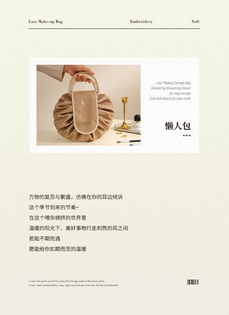 • 게으른 졸라매는 끈 화장품 가방 - 우유 살구 흰색