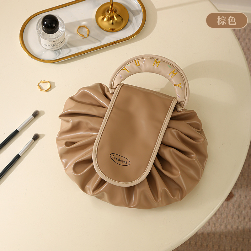 • 게으른 졸라매는 끈 화장품 가방 - 모카 브라운