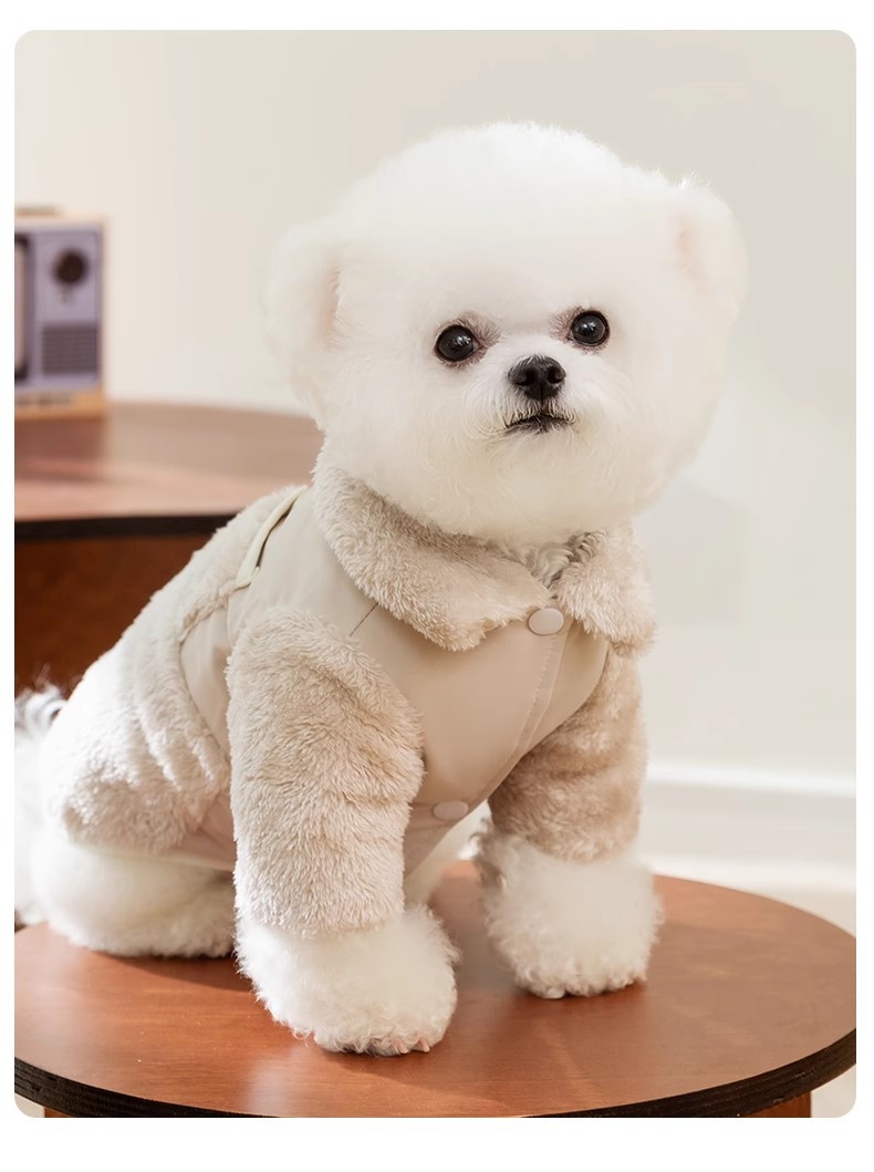 양가죽 개 옷 가을과 겨울 따뜻한 간단한 양면 비상장 옷 작은 개 Bichon 애완 동물 의류스토어 가기