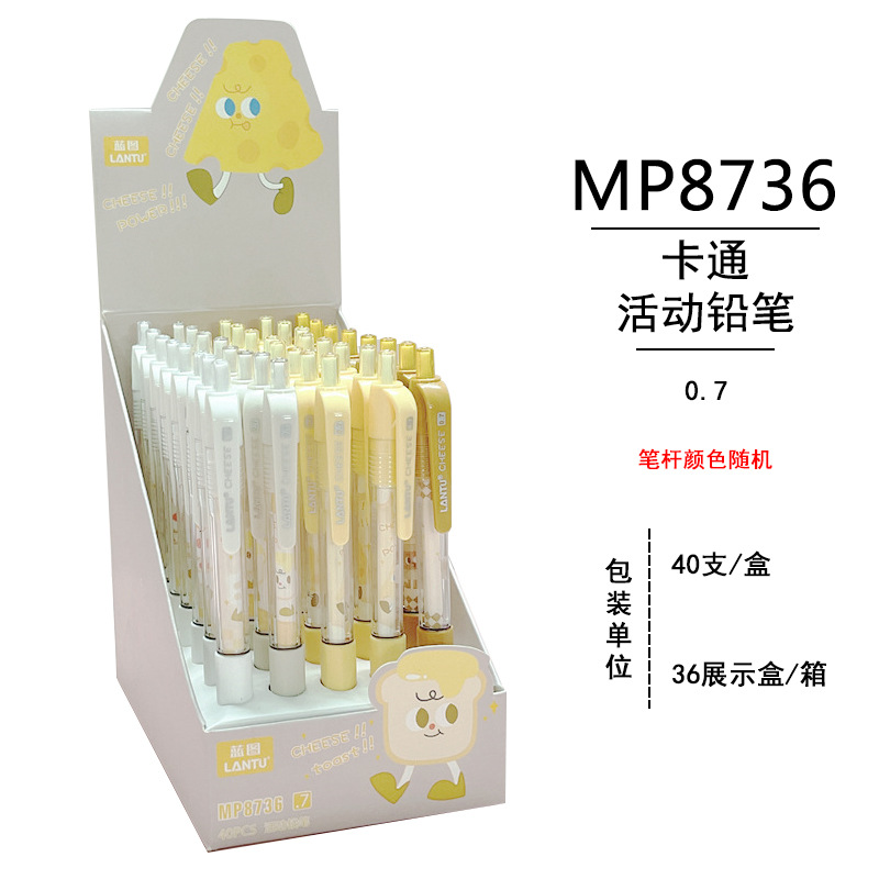 청사진 8736 기계식 연필 귀여운 치즈 높은 색상 가치 학생 프레스 만화 연필 부드러운 고무 커버 펜을 들고