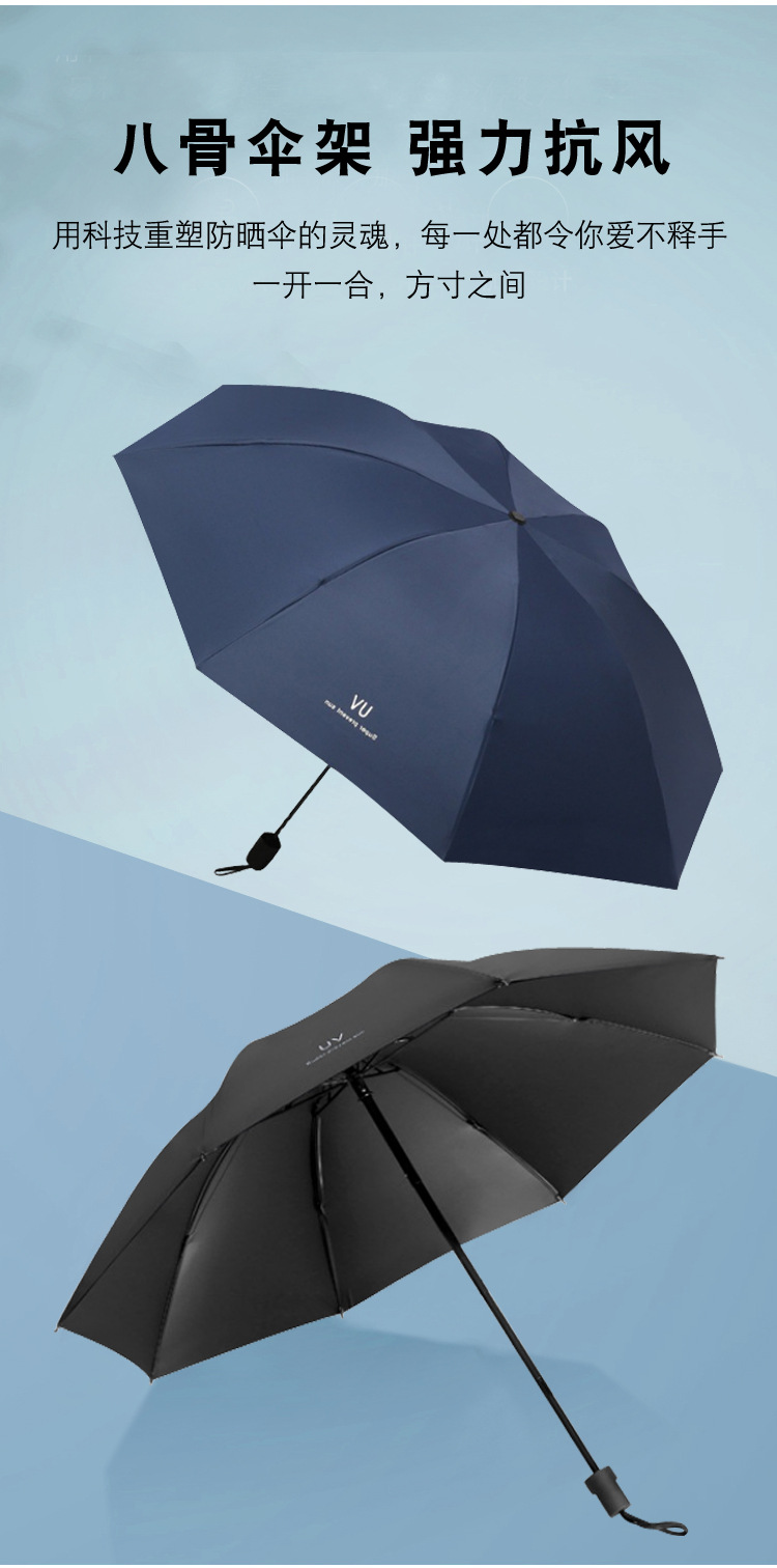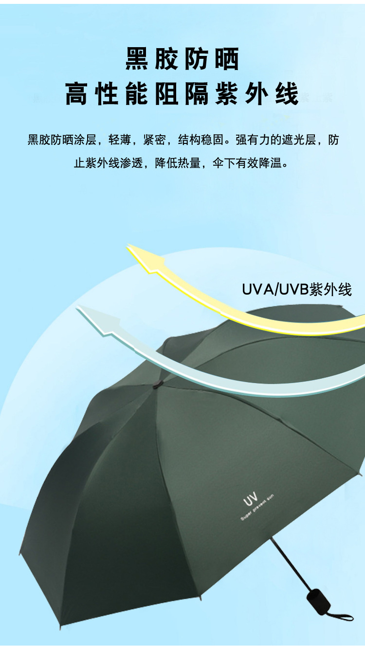 창조적 인 UV 접이식 우산 도매 검은 고무 선 스크린 태양 우산 비 이중 사용 광고 우산 인쇄 로고스토어 가기