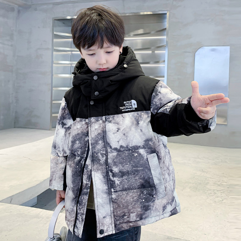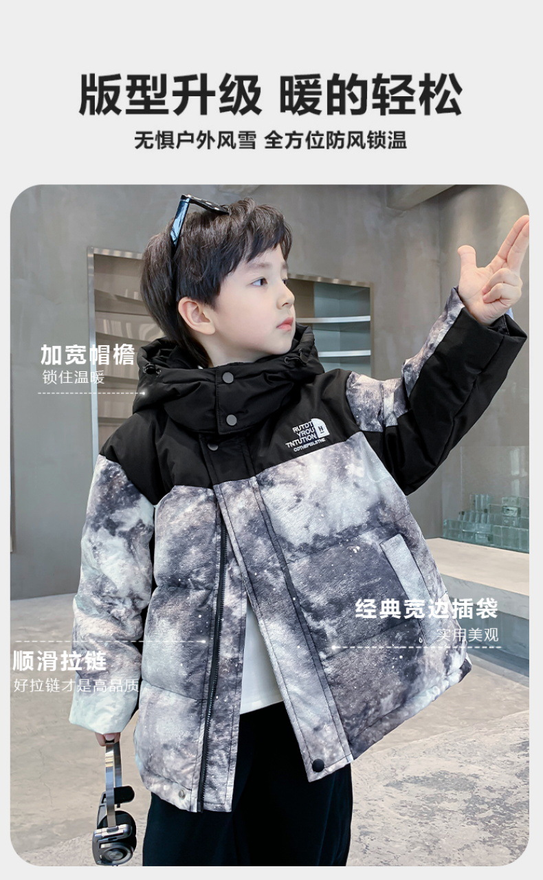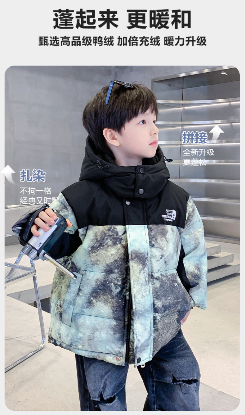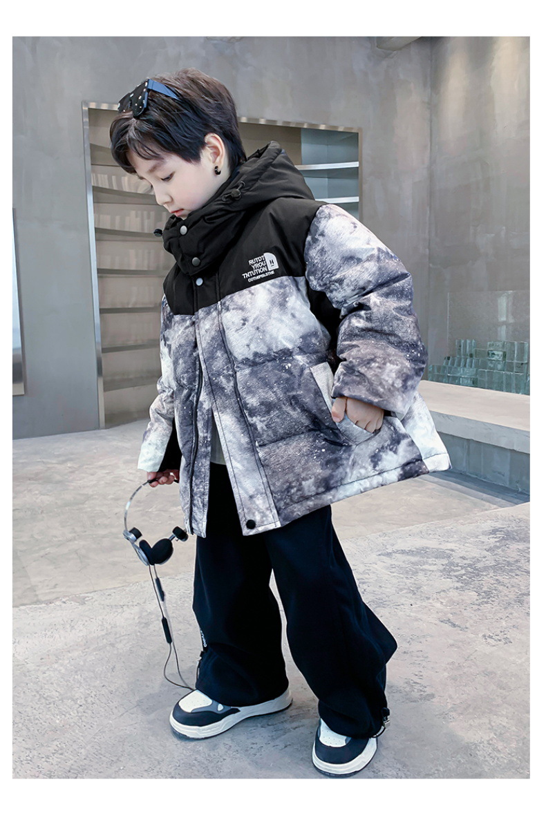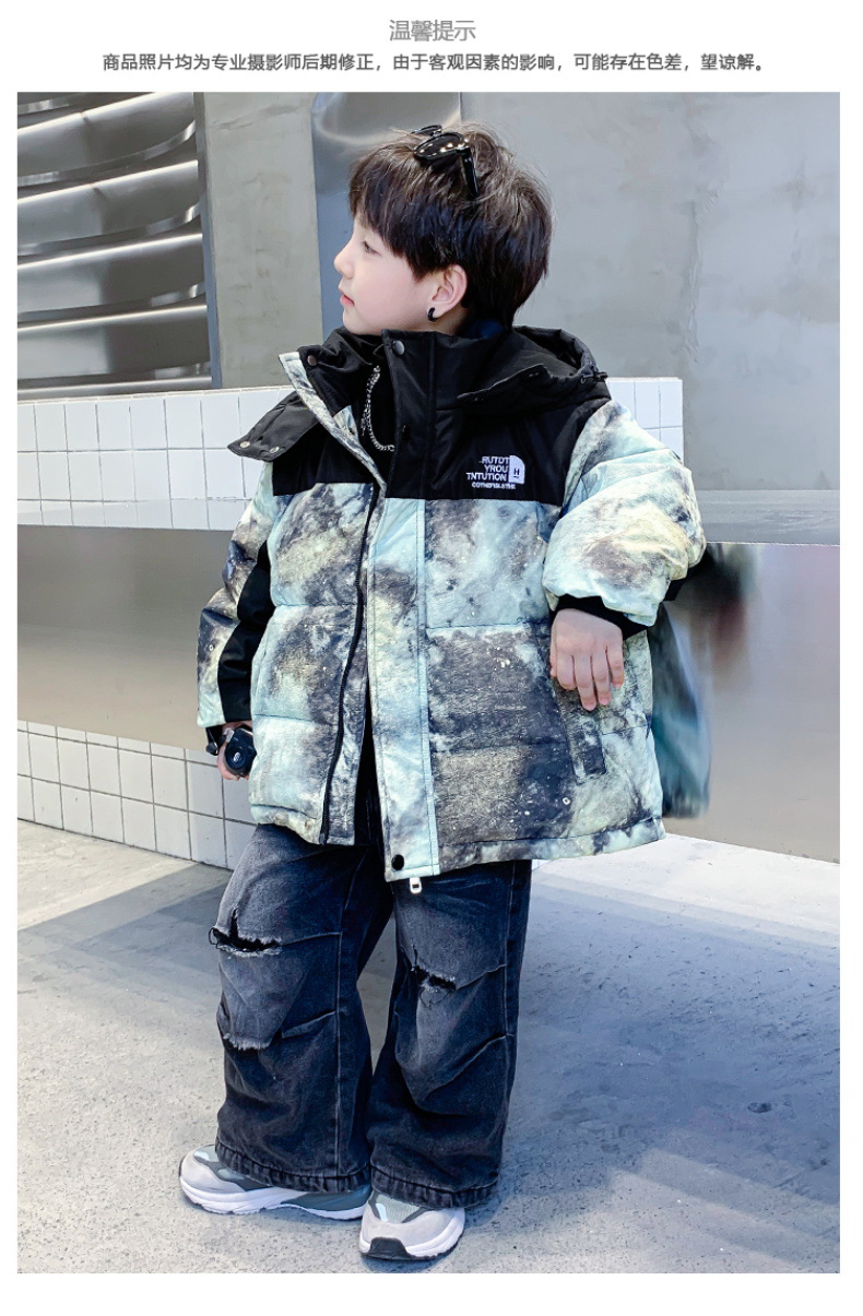 소년의 겨울 다운 재킷 2024 새로운 대형 어린이 툴링 위장 흰색 오리 다운 재킷 겨울 코트 두꺼운 서양식 트렌디스토어 가기