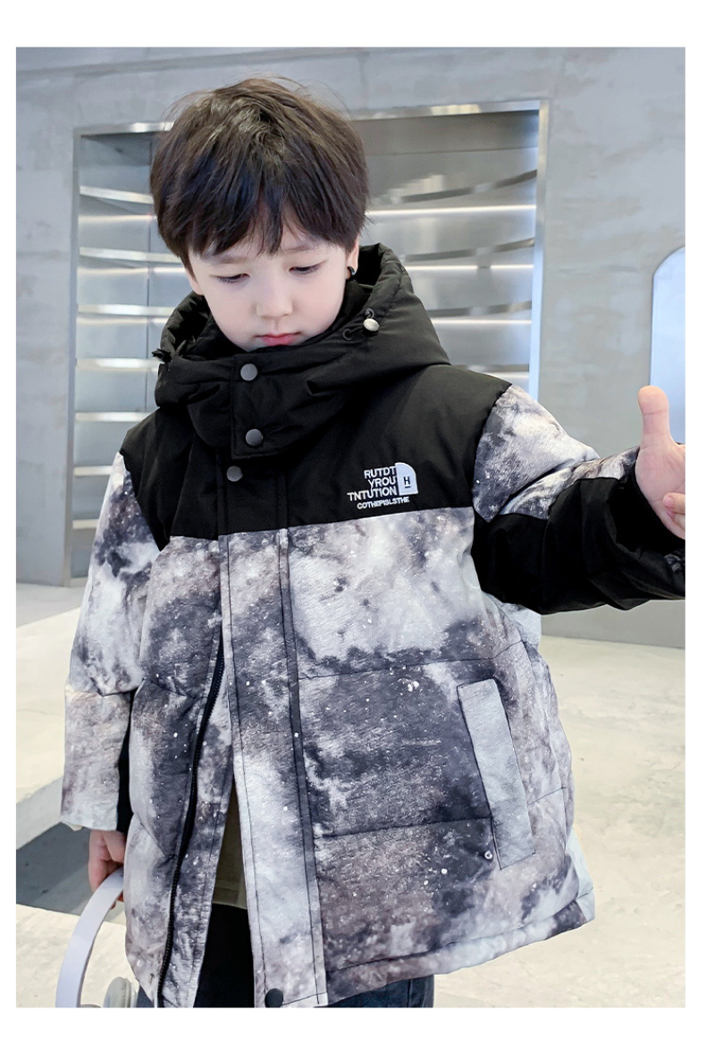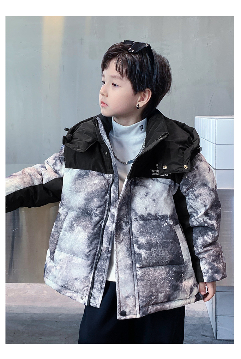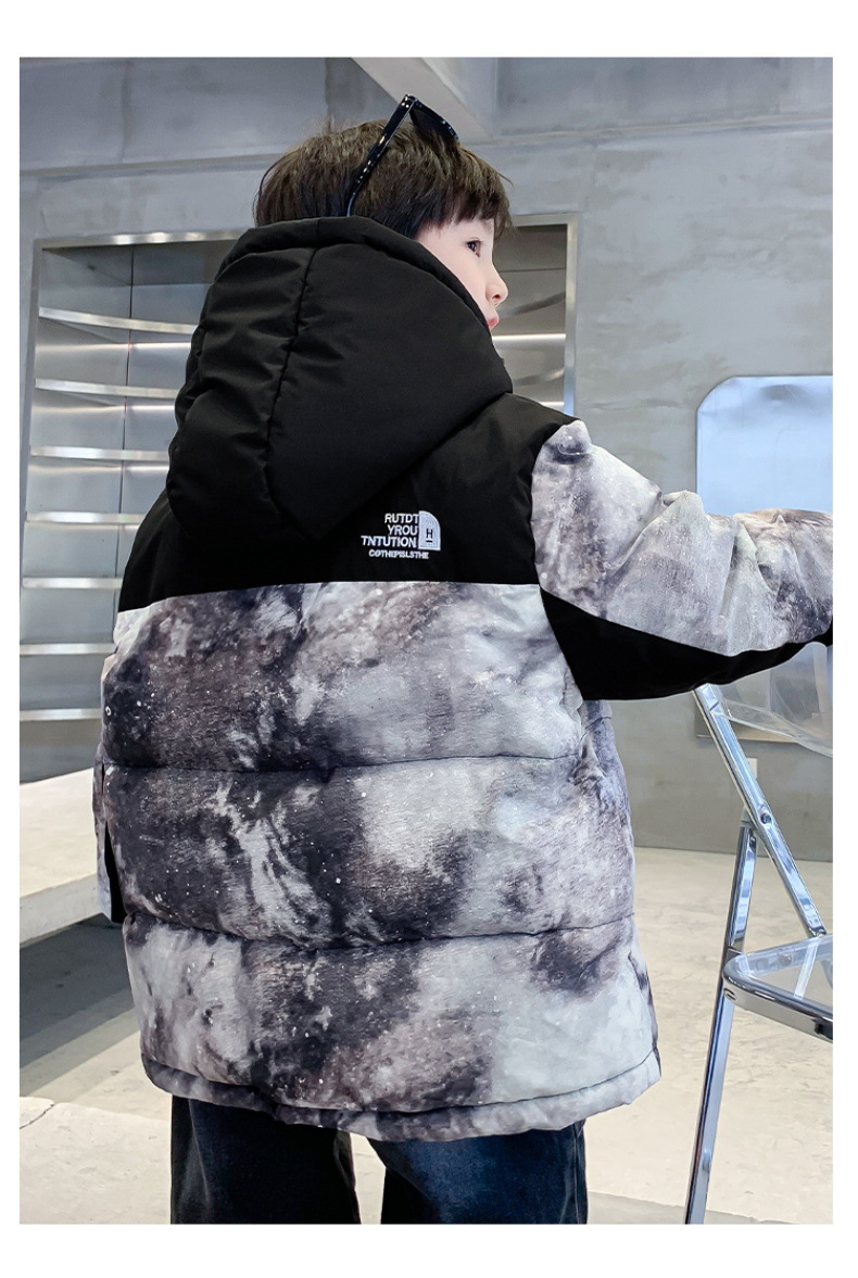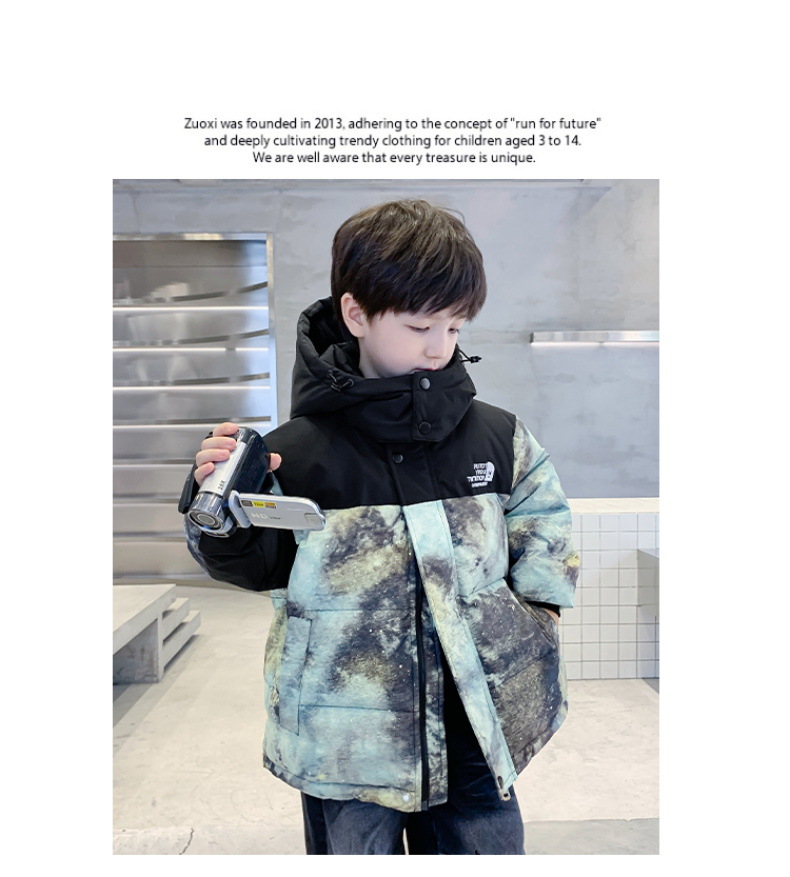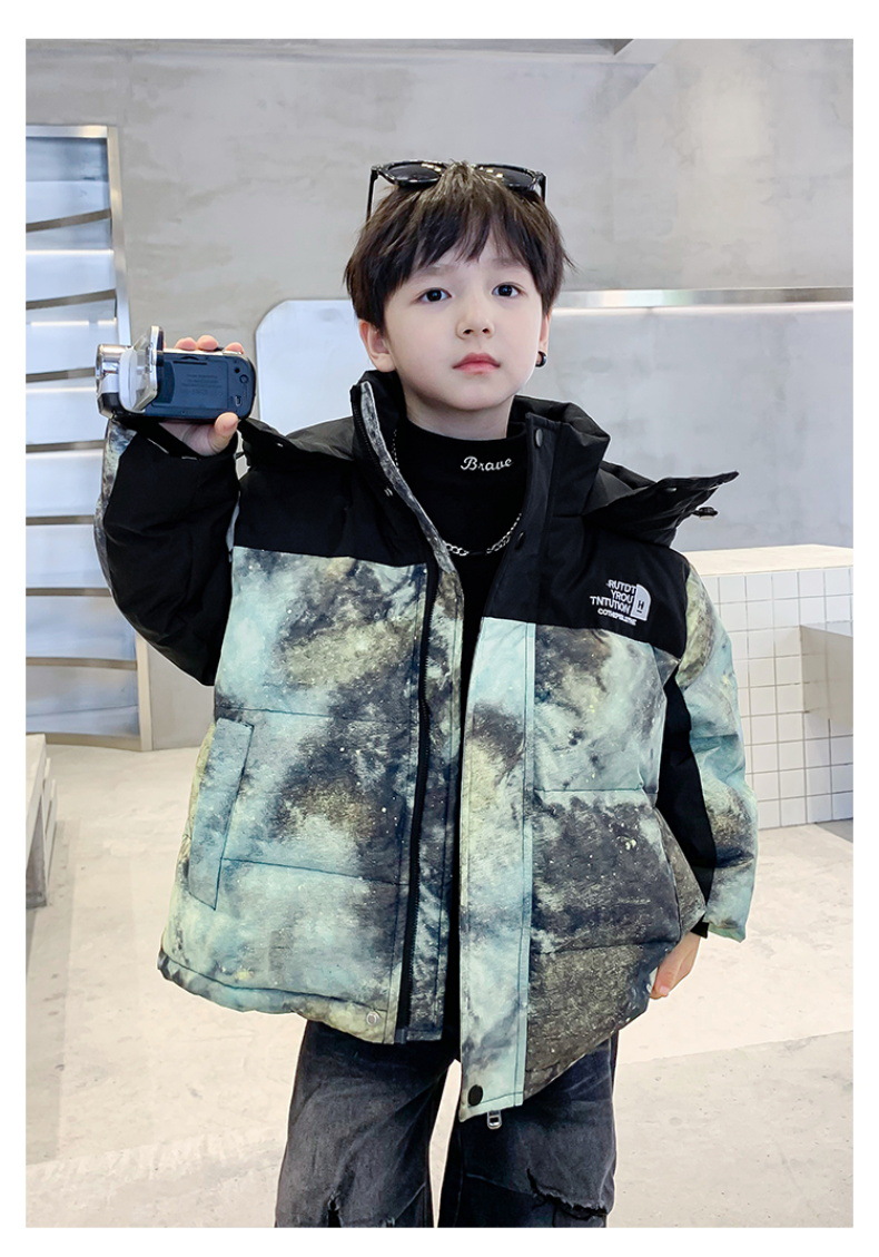 소년의 겨울 다운 재킷 2024 새로운 대형 어린이 툴링 위장 흰색 오리 다운 재킷 겨울 코트 두꺼운 서양식 트렌디스토어 가기