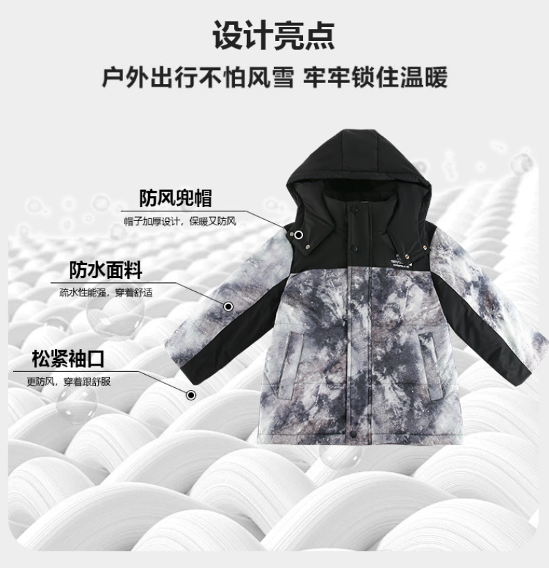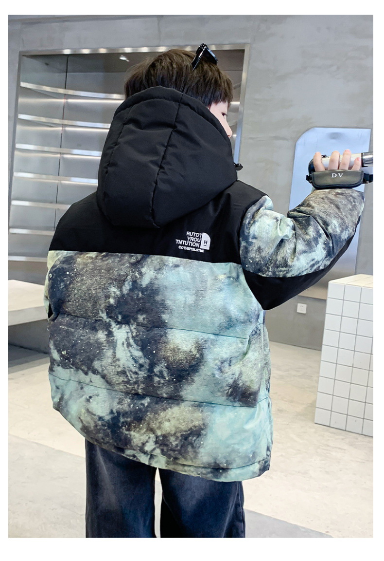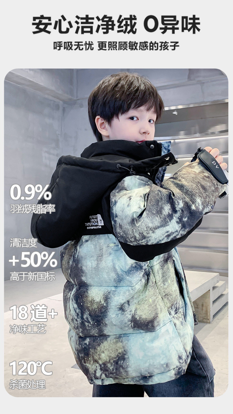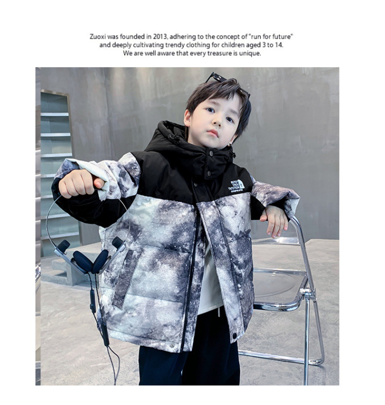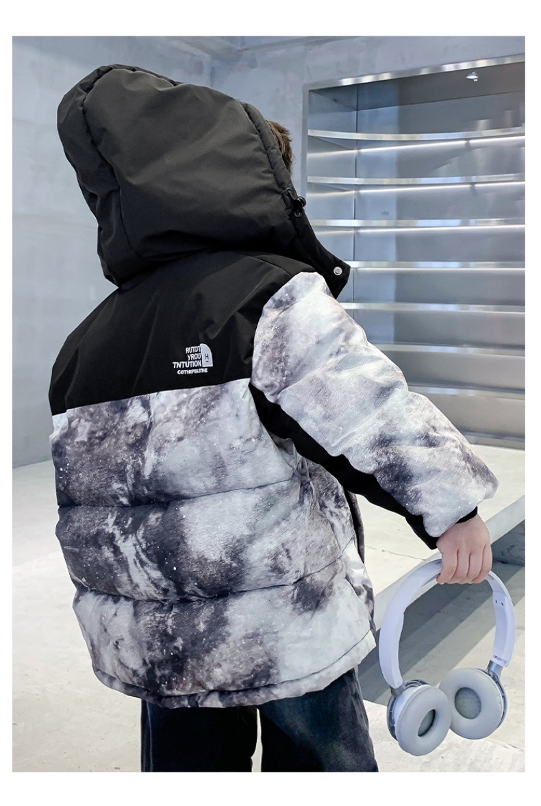 소년의 겨울 다운 재킷 2024 새로운 대형 어린이 툴링 위장 흰색 오리 다운 재킷 겨울 코트 두꺼운 서양식 트렌디스토어 가기