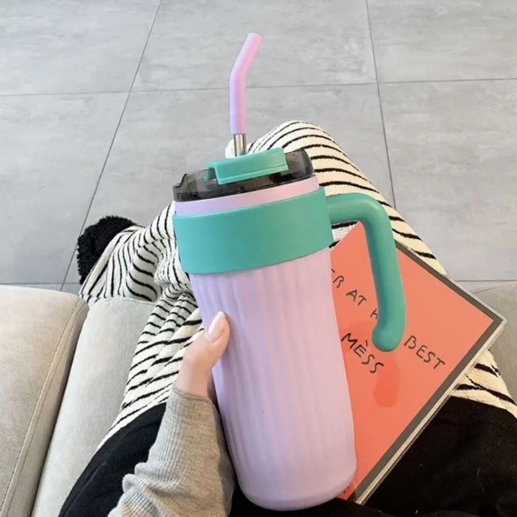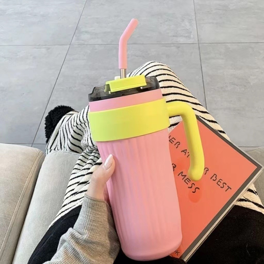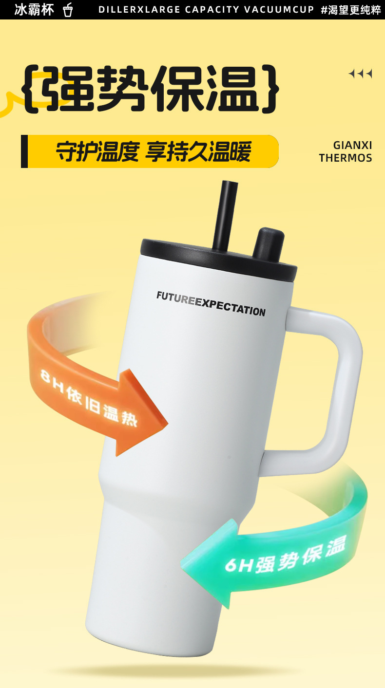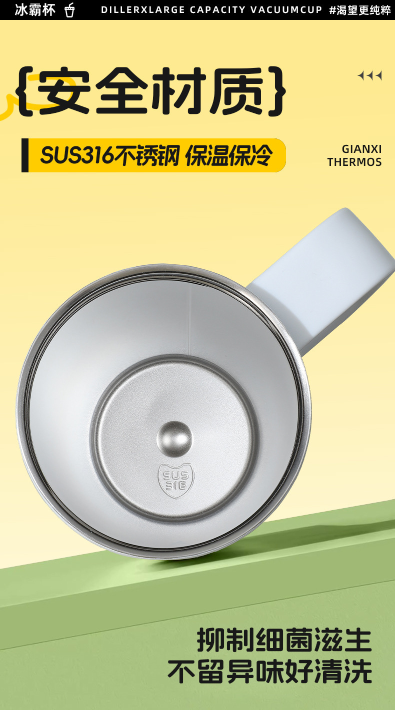 높은 색상 가치 316 스테인레스 스틸 보온병 컵 대용량 핸들 커피 컵 휴대용 차가운 얼음 컵 밀짚 컵스토어 가기