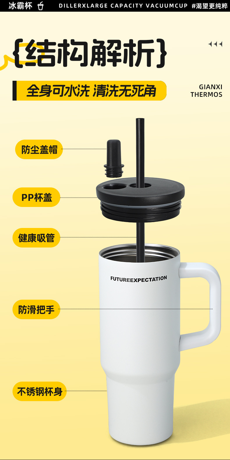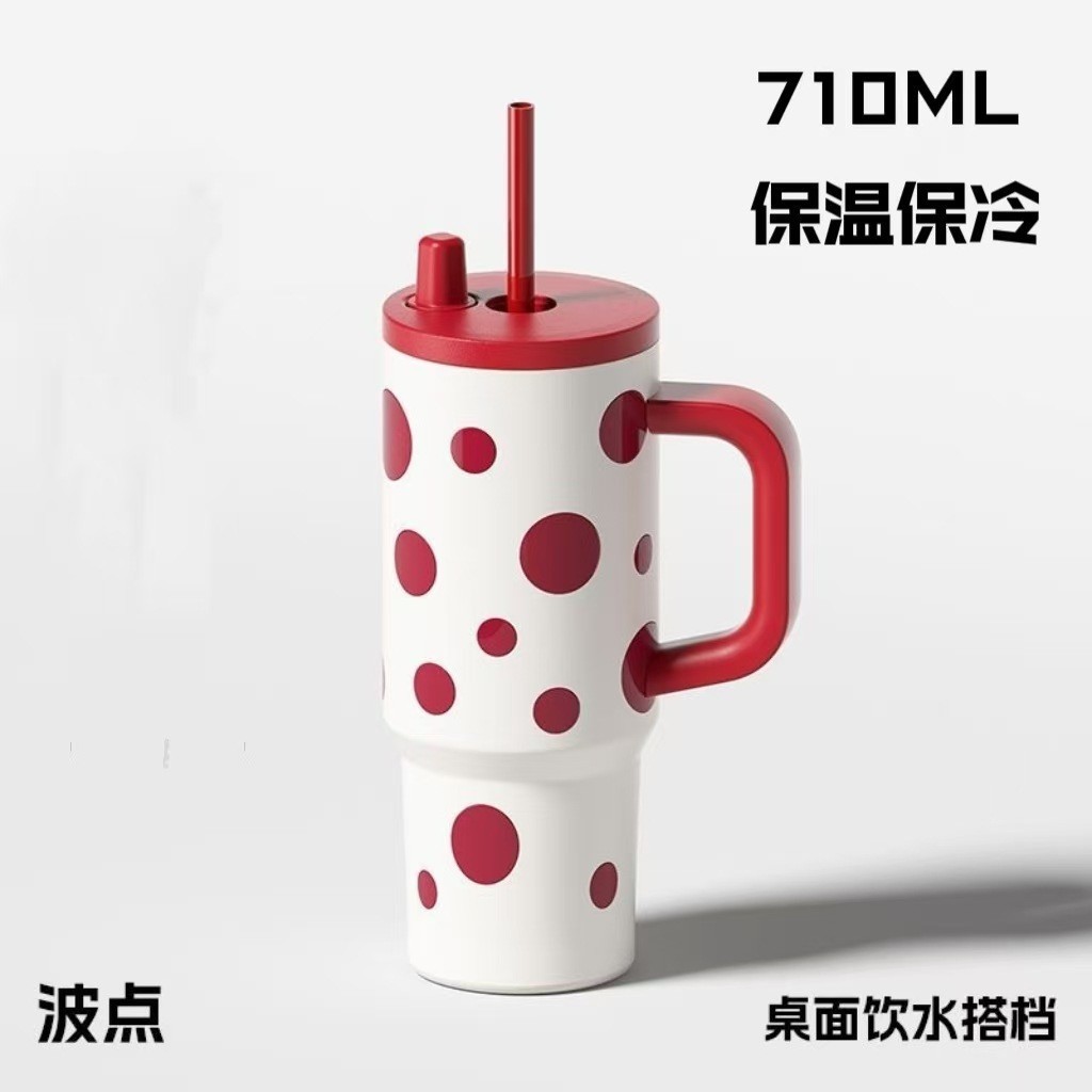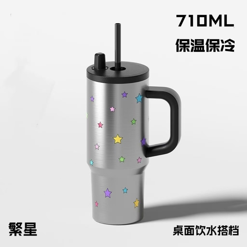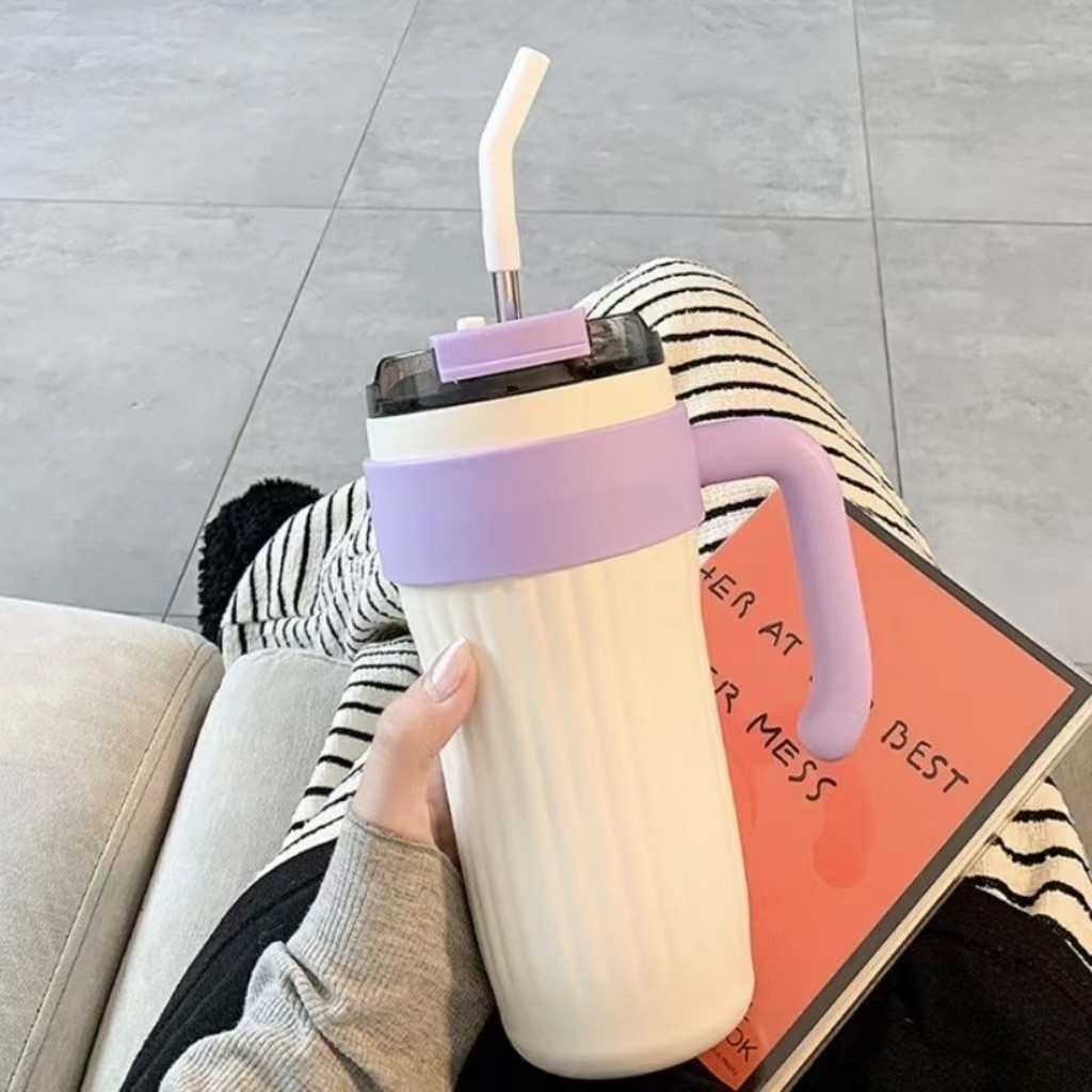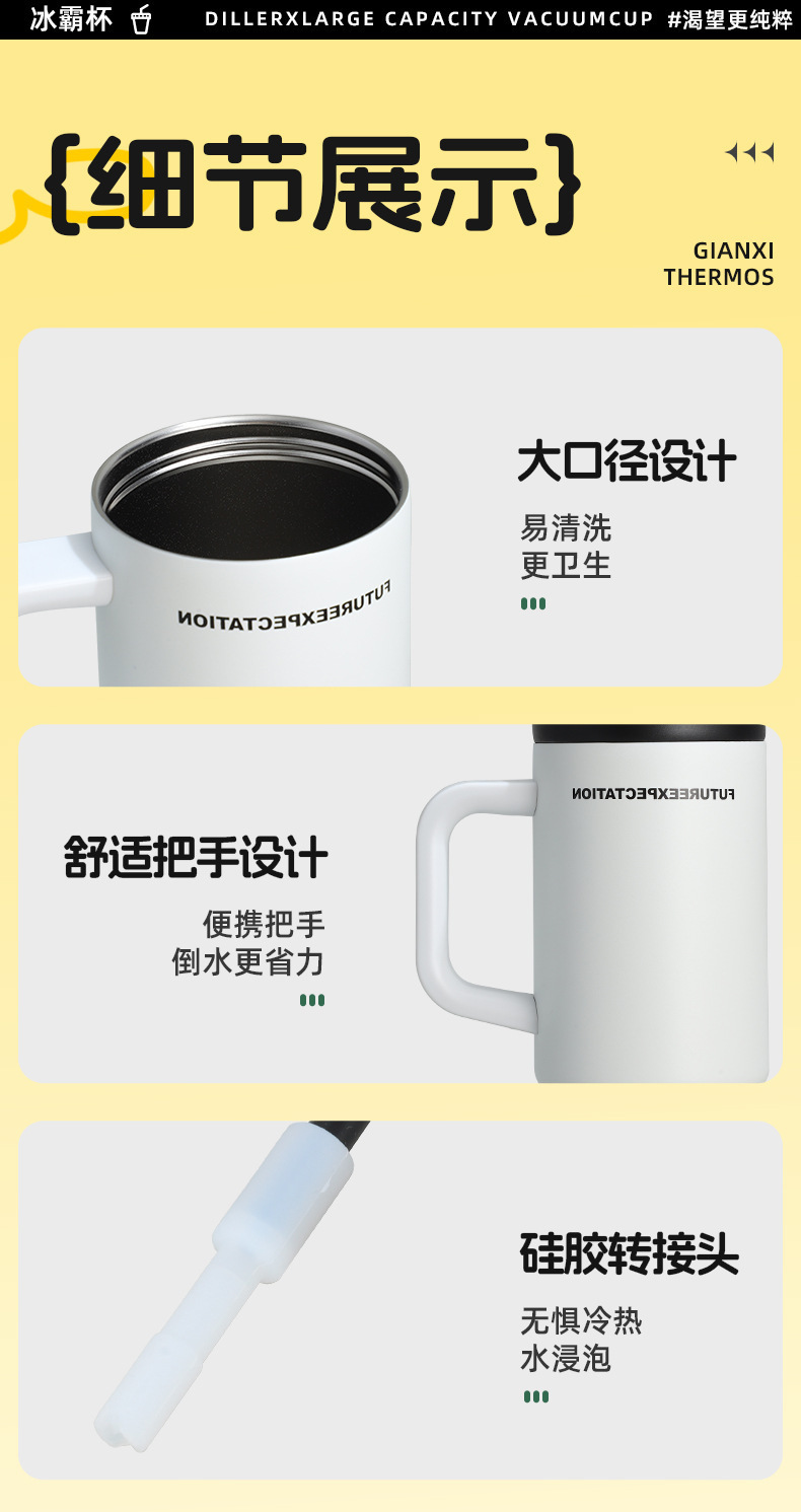 높은 색상 가치 316 스테인레스 스틸 보온병 컵 대용량 핸들 커피 컵 휴대용 차가운 얼음 컵 밀짚 컵스토어 가기