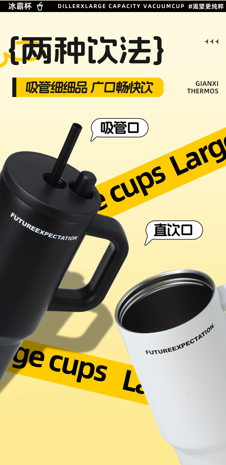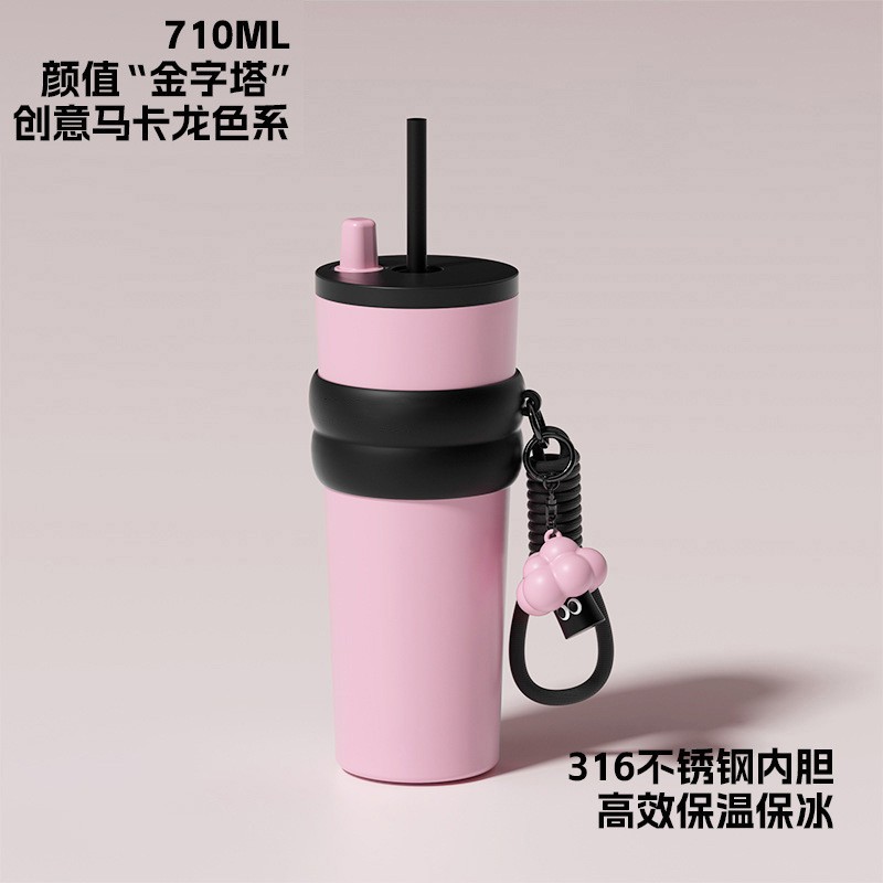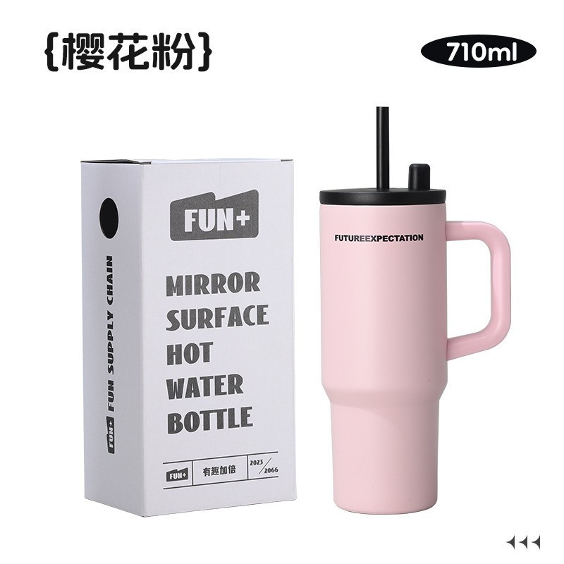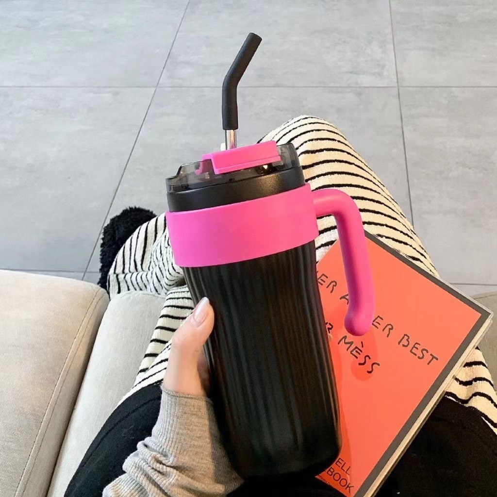높은 색상 가치 316 스테인레스 스틸 보온병 컵 대용량 핸들 커피 컵 휴대용 차가운 얼음 컵 밀짚 컵
