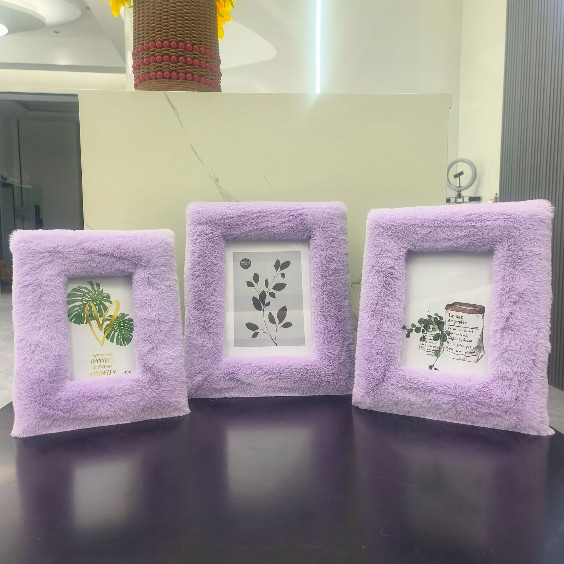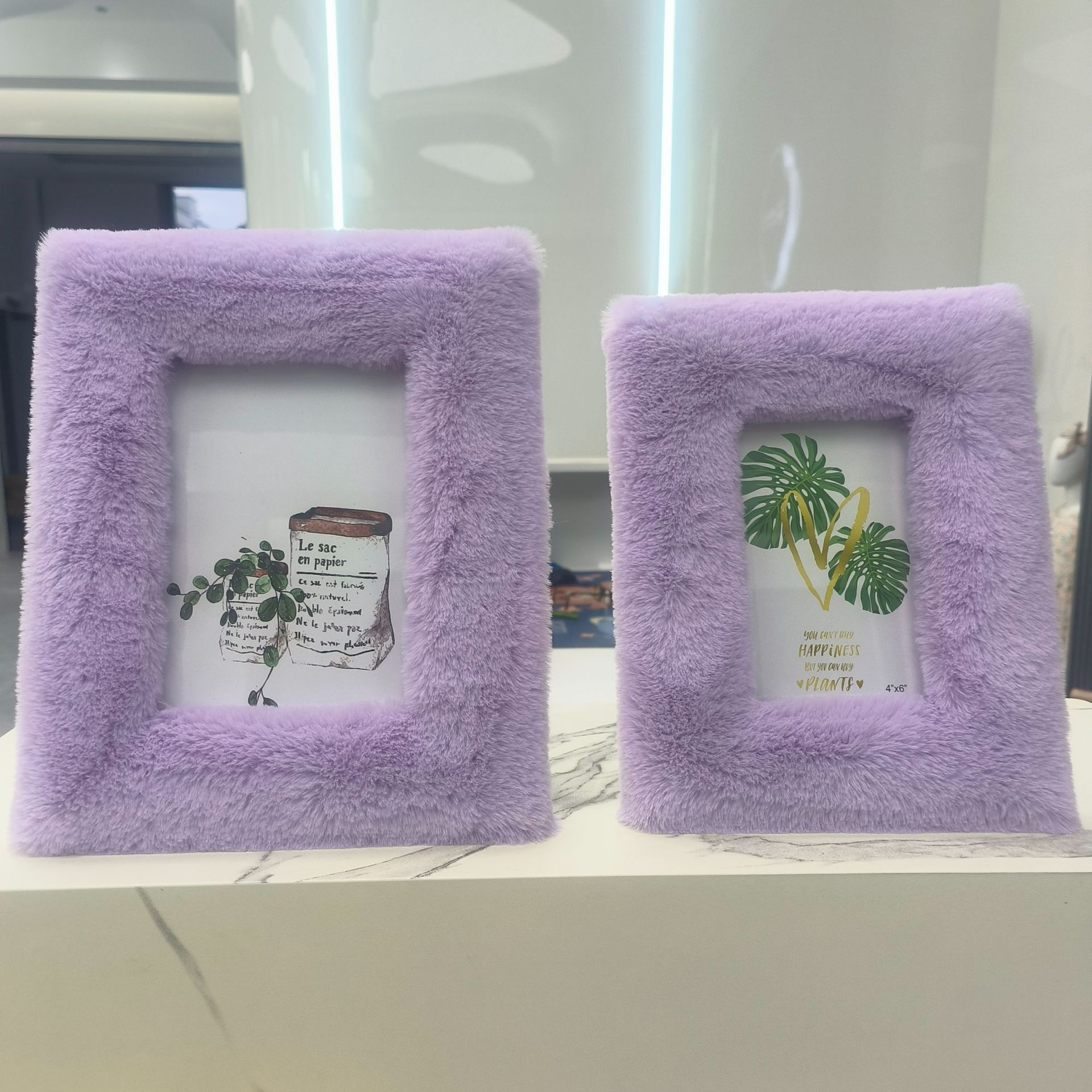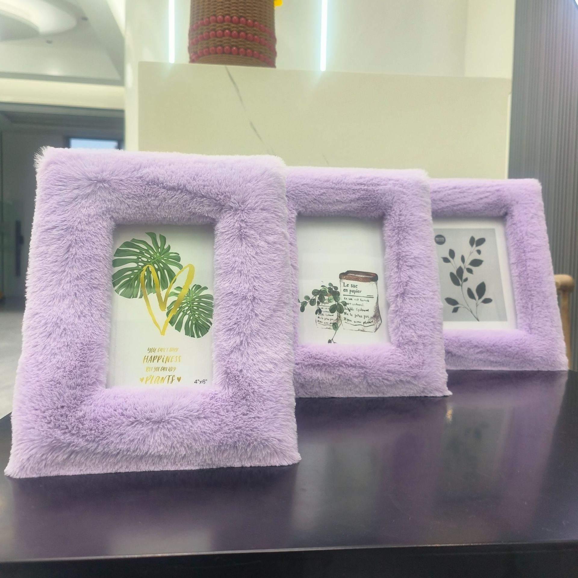 봉제 사진 프레임 MDF 패키지 양털 모조 울 스퀘어 중공 사진 프레임 유럽과 미국의 mdf 천 테이블 67 인치 보라색스토어 가기