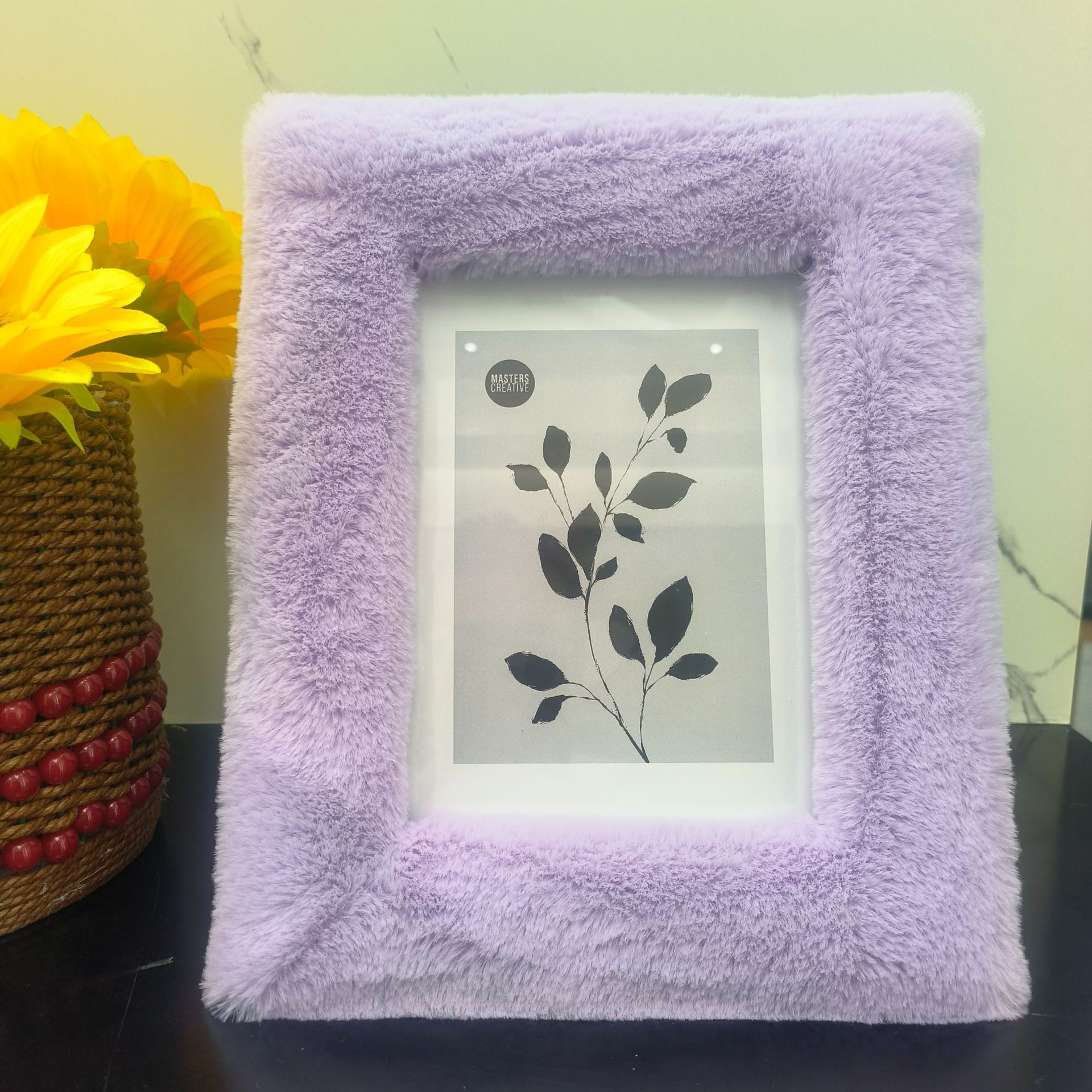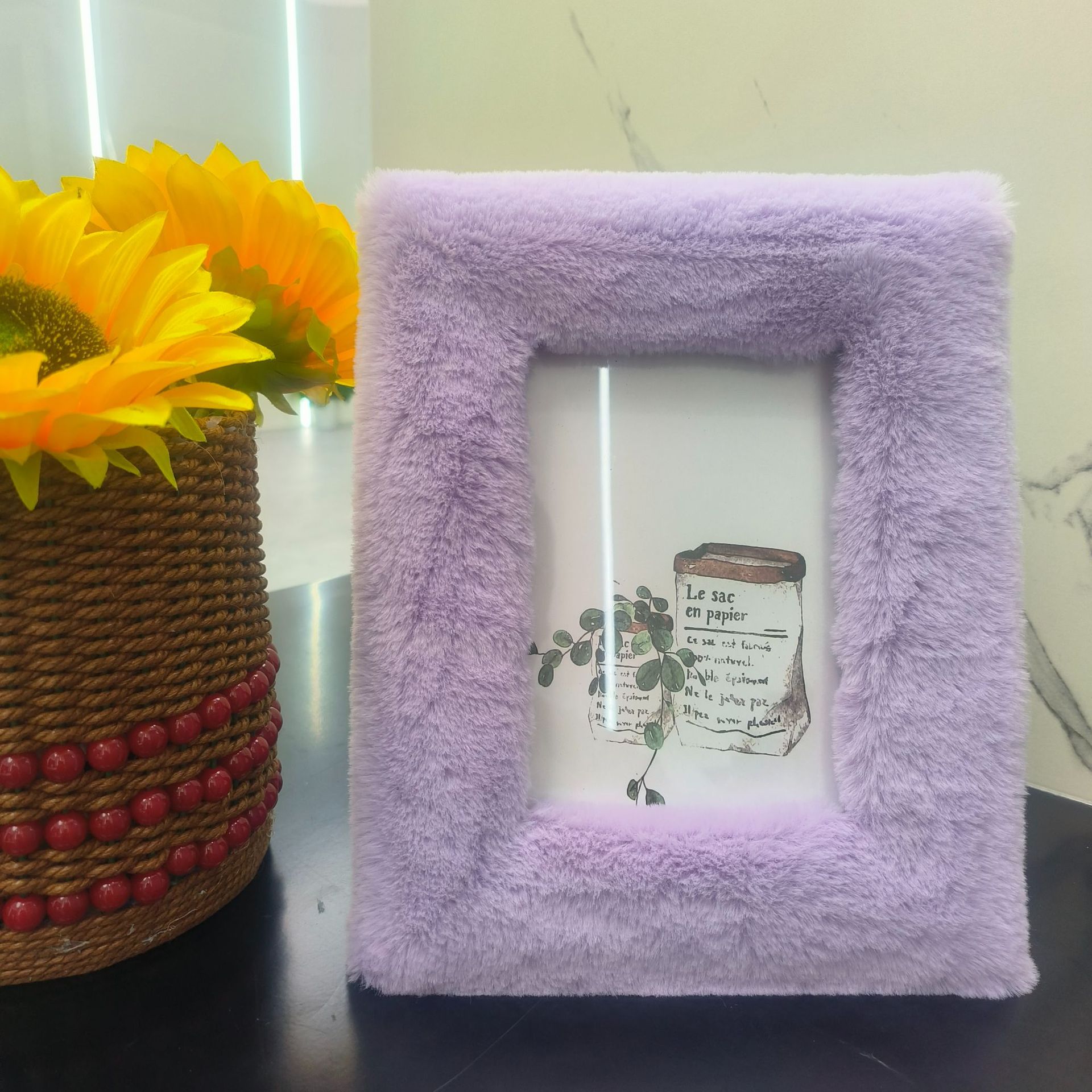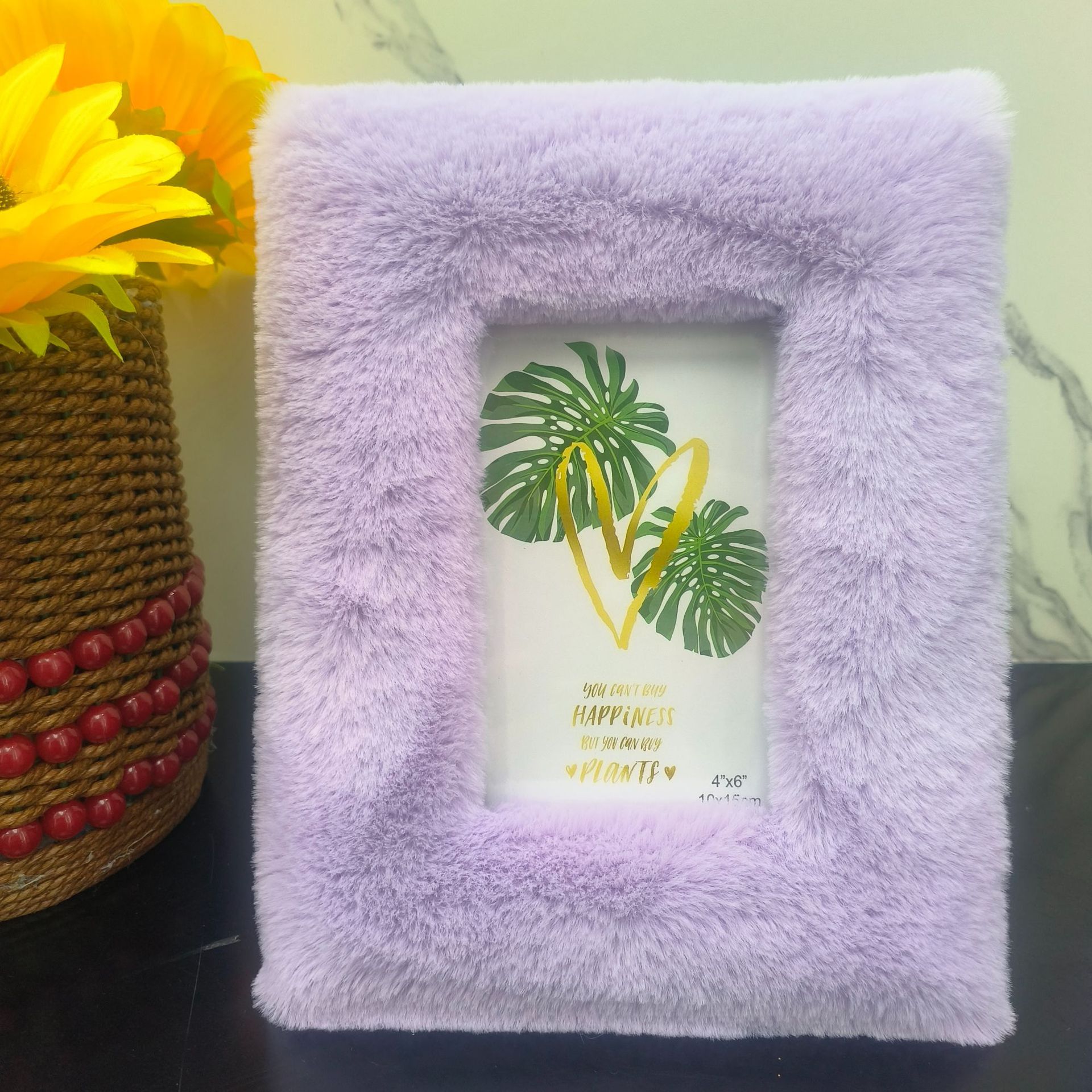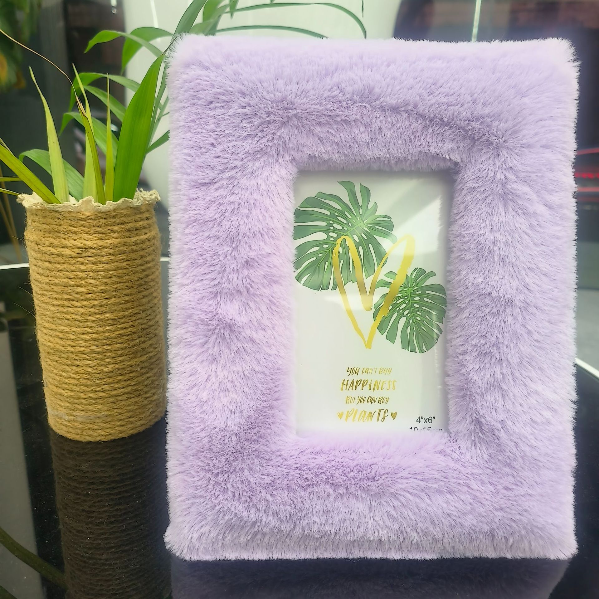 봉제 사진 프레임 MDF 패키지 양털 모조 울 스퀘어 중공 사진 프레임 유럽과 미국의 mdf 천 테이블 67 인치 보라색스토어 가기