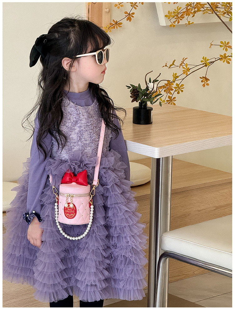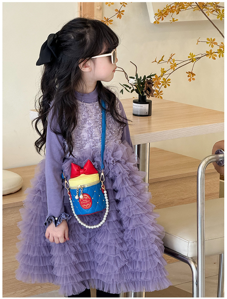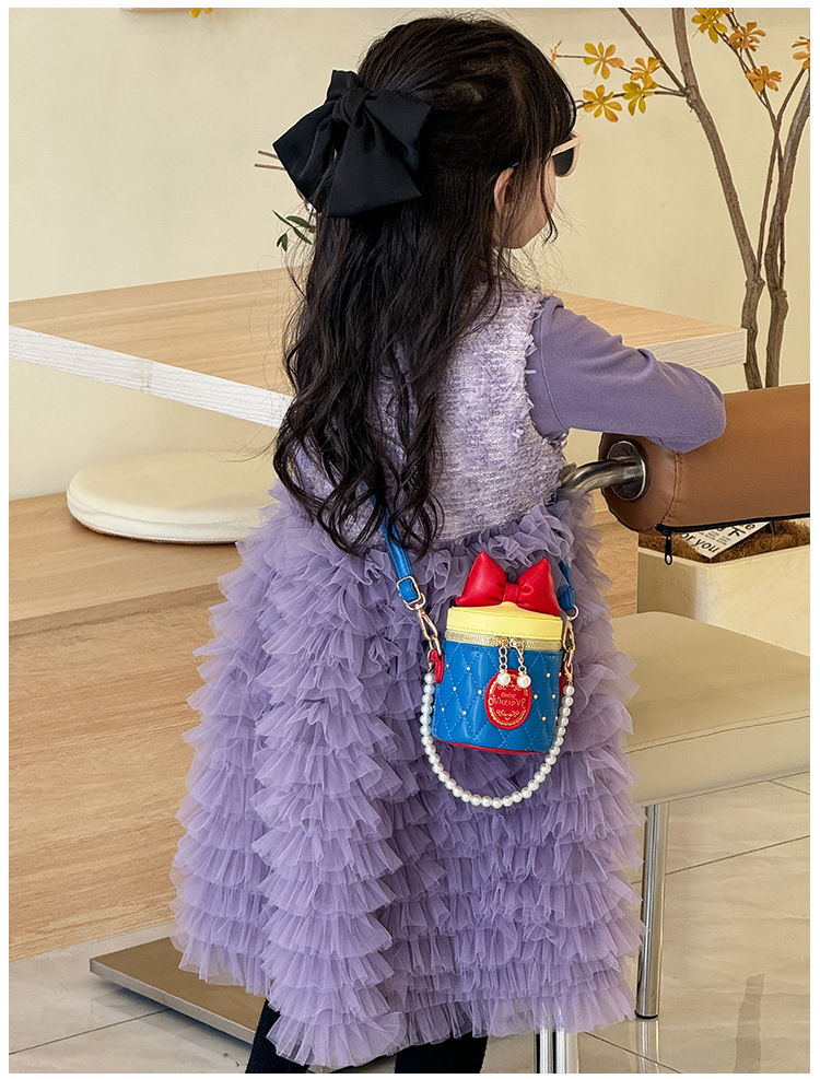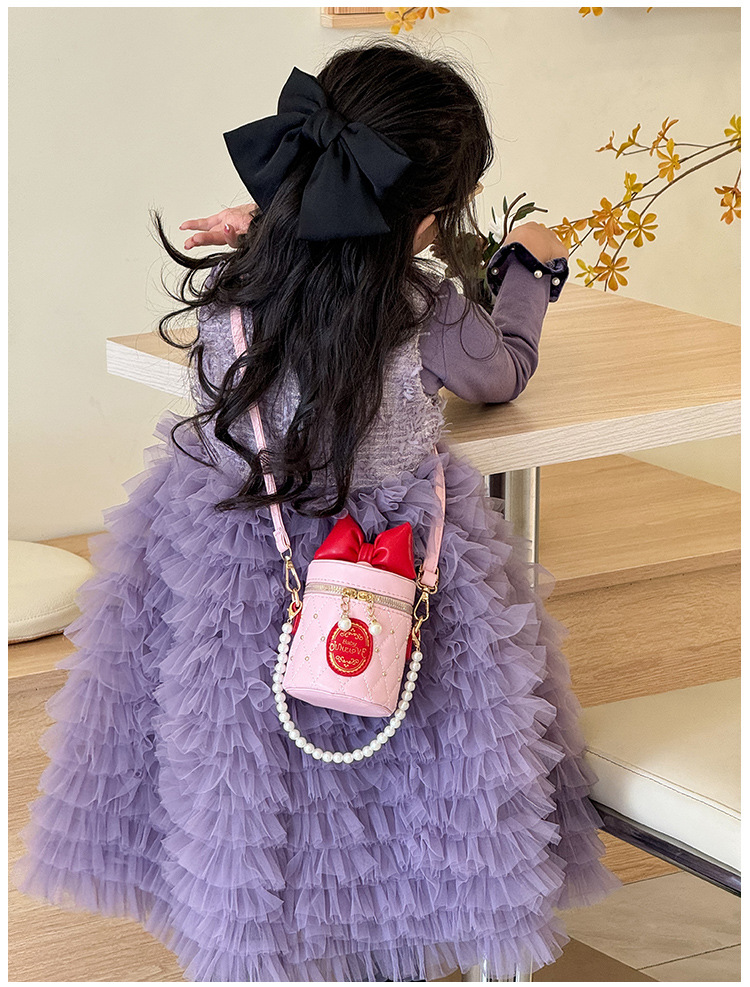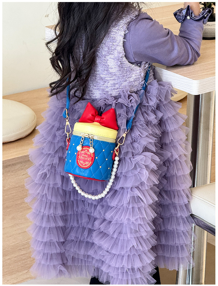 어린이 가방 귀여운 공주 활 버킷 가방 소녀 유행 크로스 바디 가방 소녀 아기 손 동전 지갑
