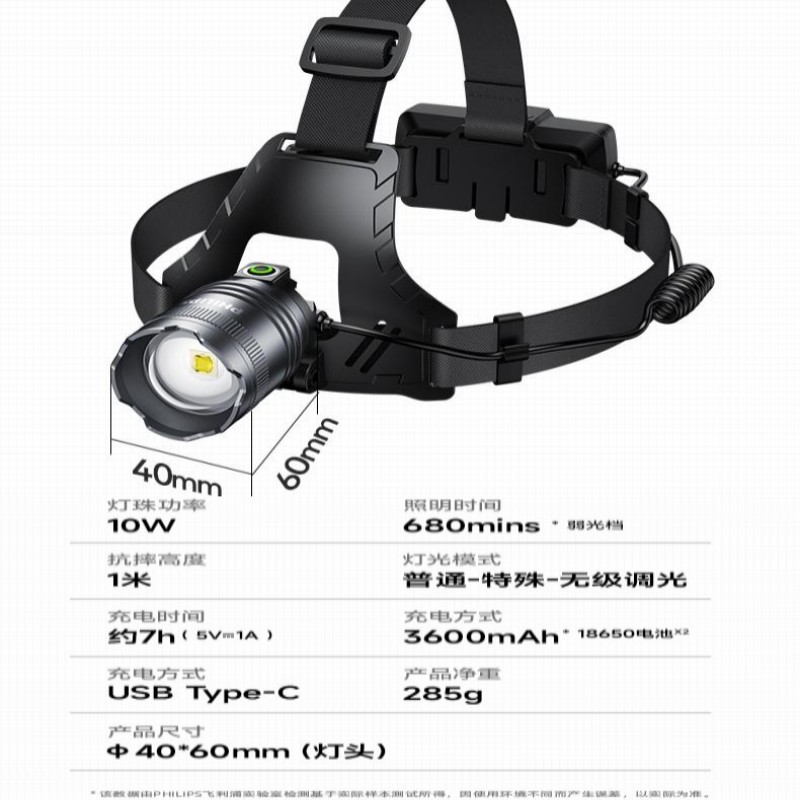 필립스 SFL3183RH 유도 헤드 라이트 강한 빛 긴 지구력 야간 낚시 램프 헤드 캡 클립 작업 램프 장거리