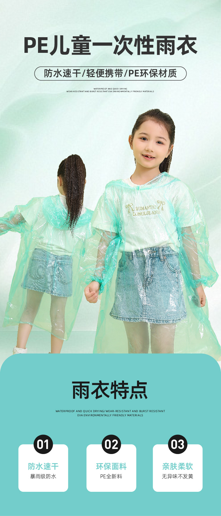 리 왕 비옷 일회용 두꺼운 PE 비옷 야외 여행 학생 비옷 하이킹 휴대용 비옷 카드