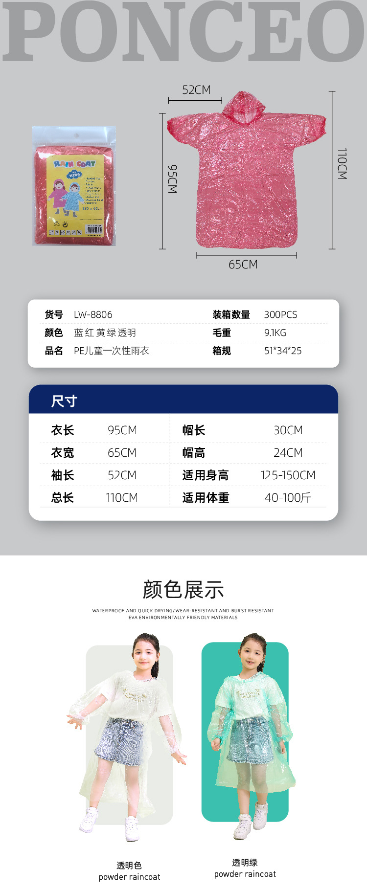 리 왕 비옷 일회용 두꺼운 PE 비옷 야외 여행 학생 비옷 하이킹 휴대용 비옷 카드스토어 가기