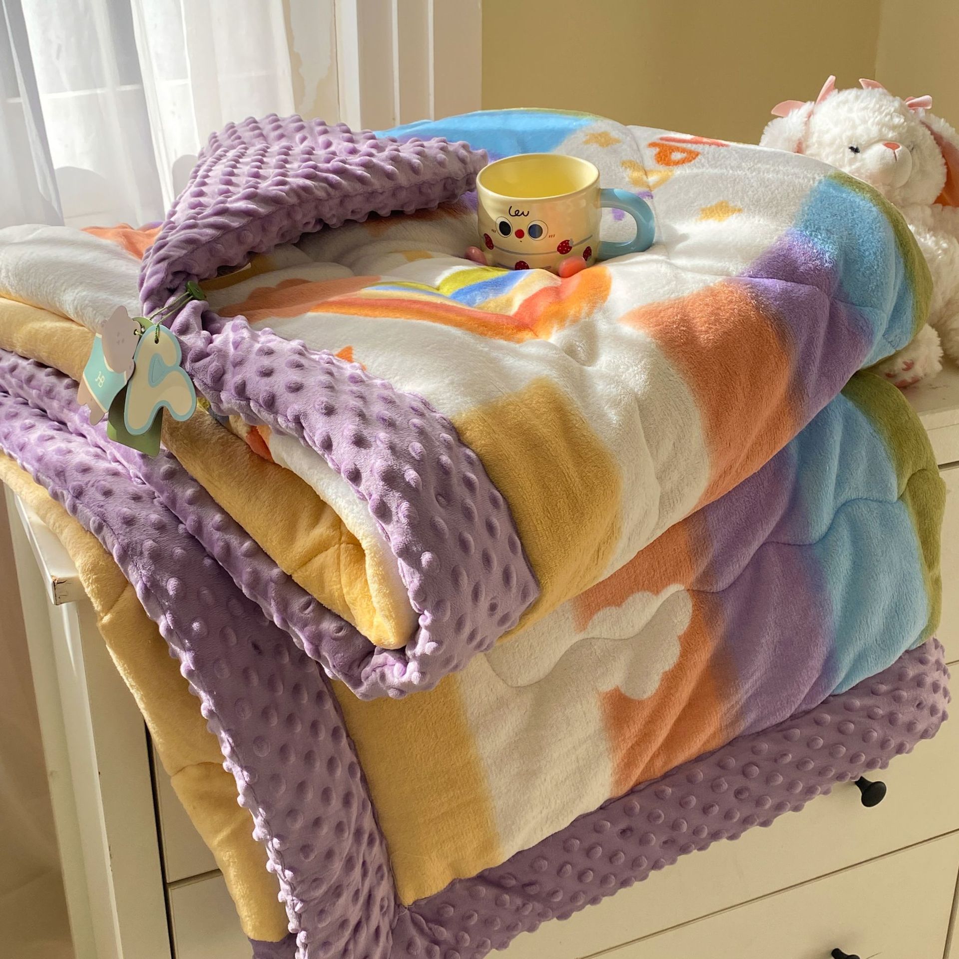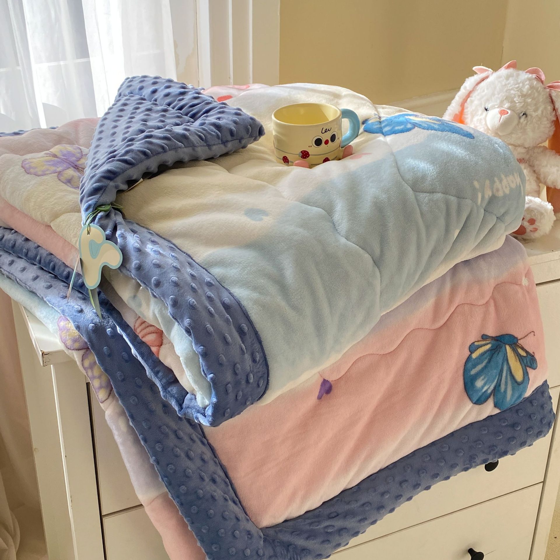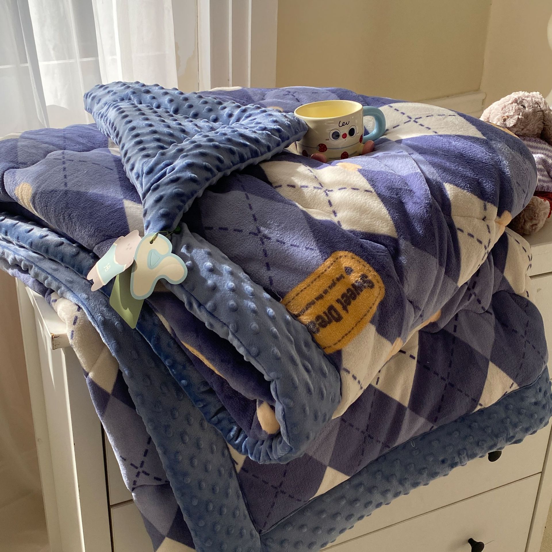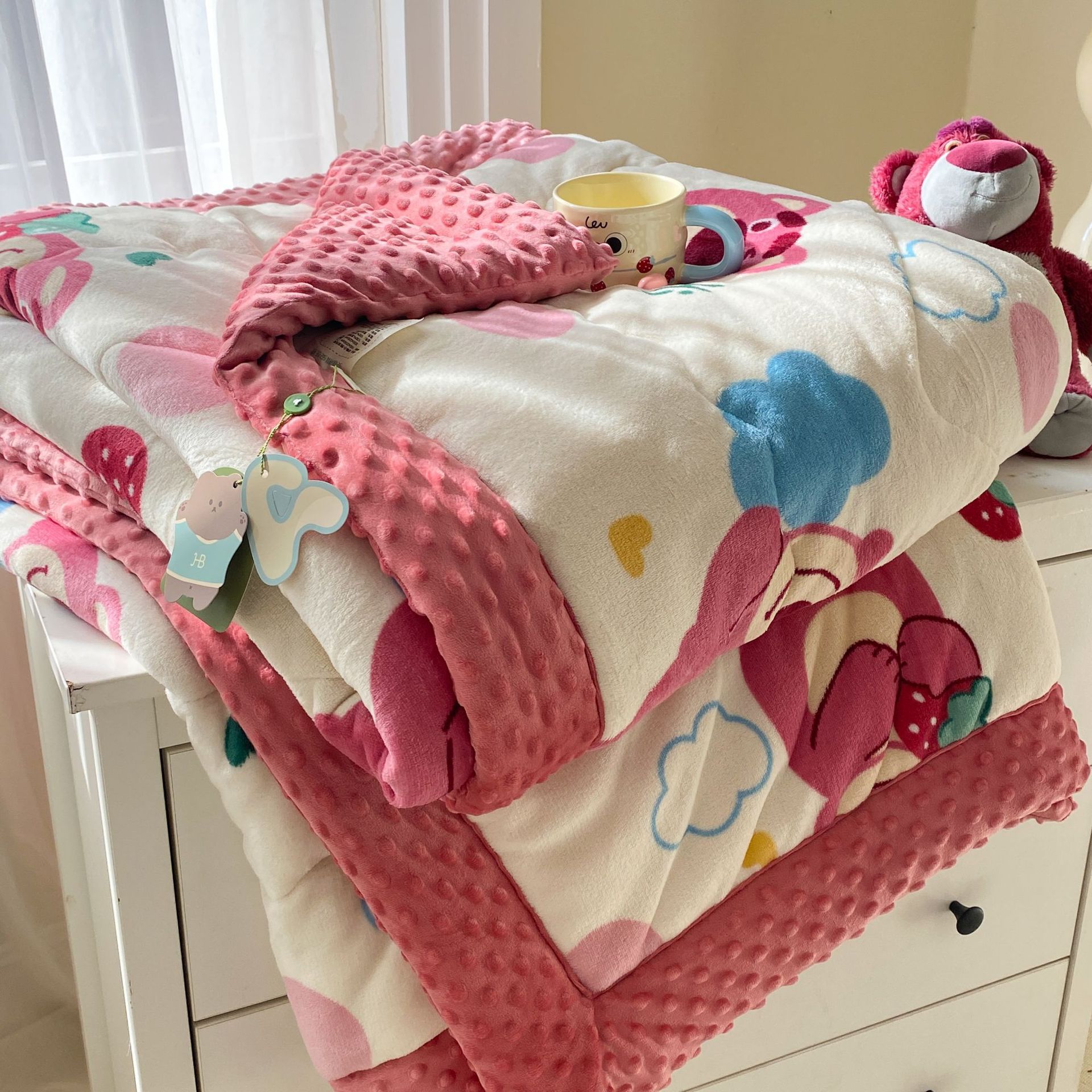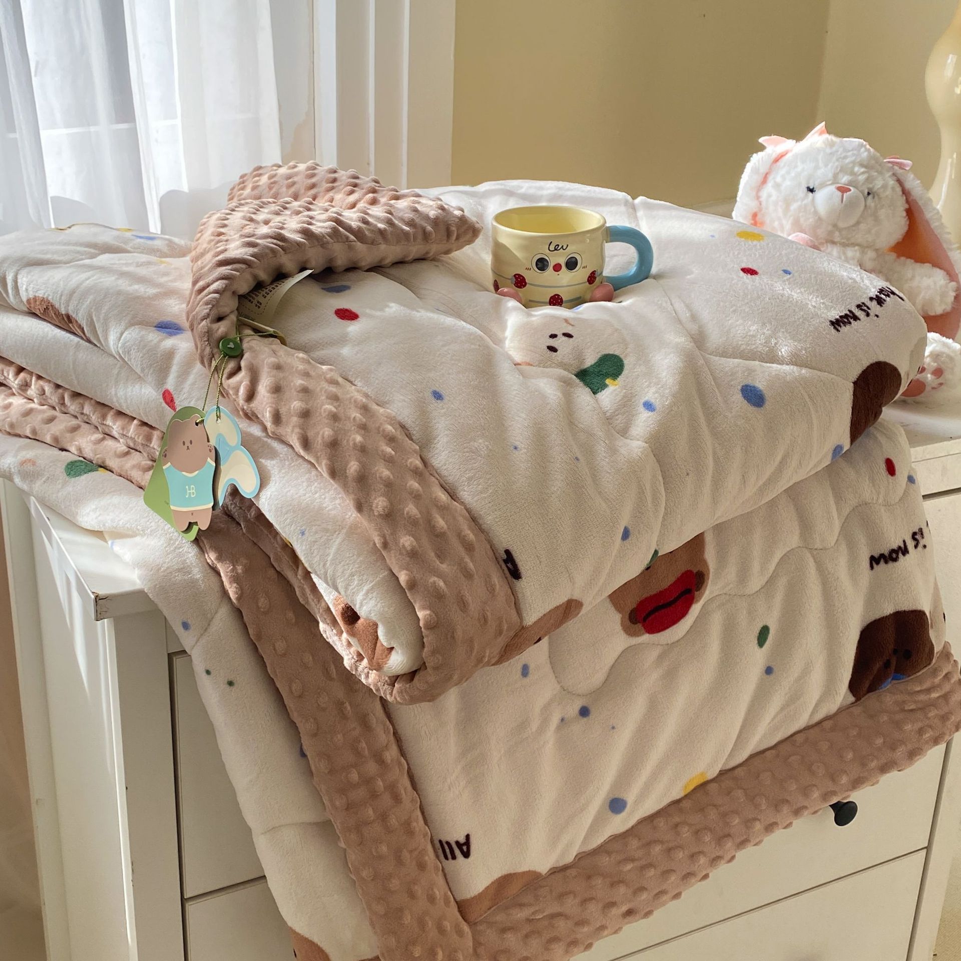 콩 우유 양털 이불 양면 양털 두꺼운 따뜻한 겨울 아기 양털 콩 더블 침대 커버 4 피스 세트스토어 가기