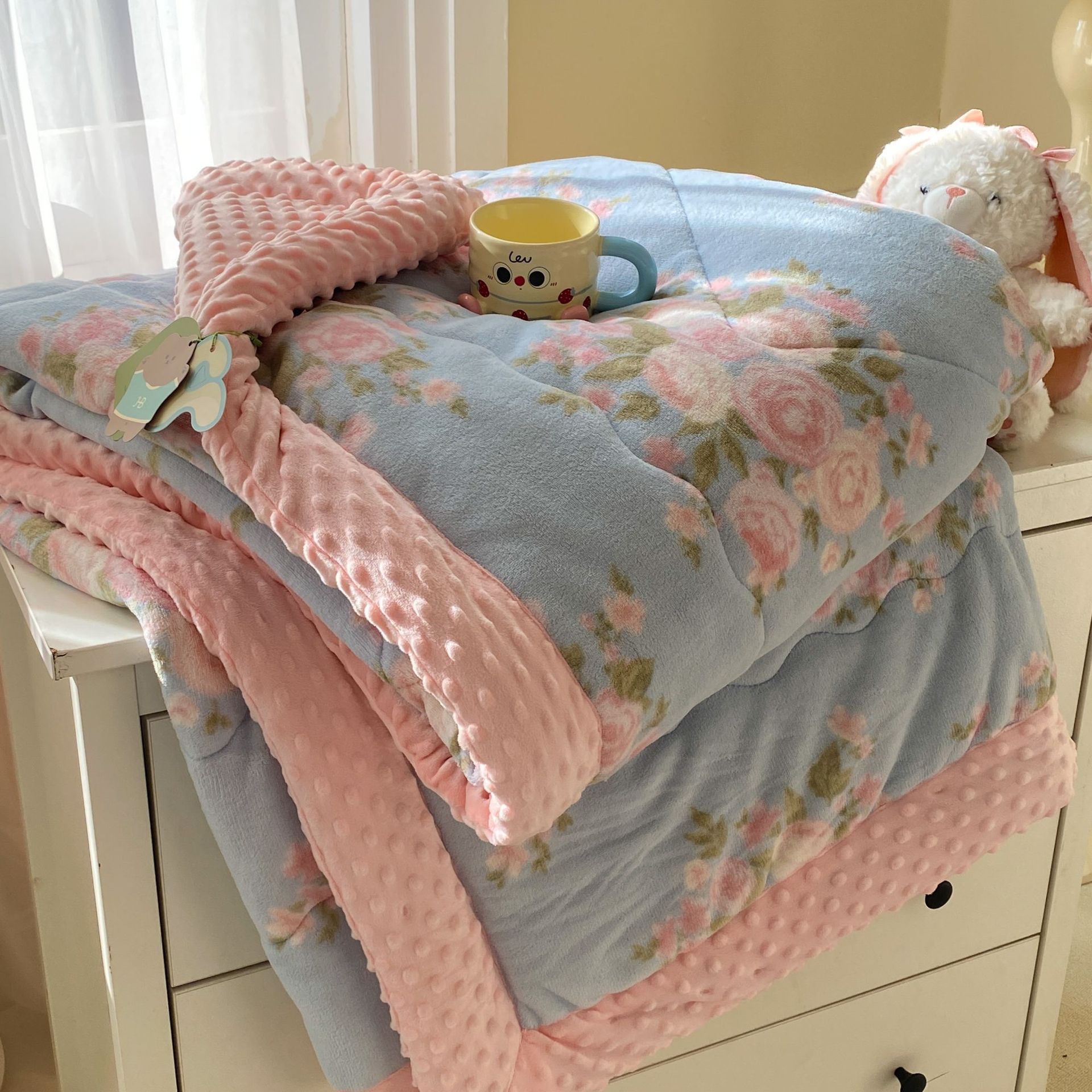 콩 우유 양털 이불 양면 양털 두꺼운 따뜻한 겨울 아기 양털 콩 더블 침대 커버 4 피스 세트