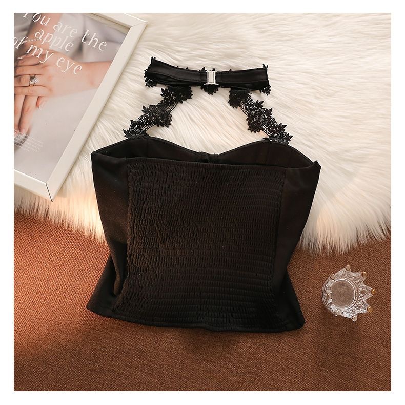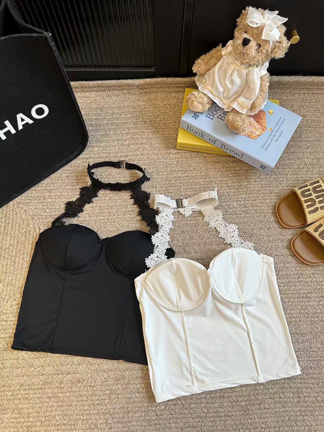 섹시한 스파이스 소녀 조끼 가슴 패드 블랙 레이스 넥 탑 슬림 핏 외부 착용 짧은 슬링 레이스 베이스스토어 가기